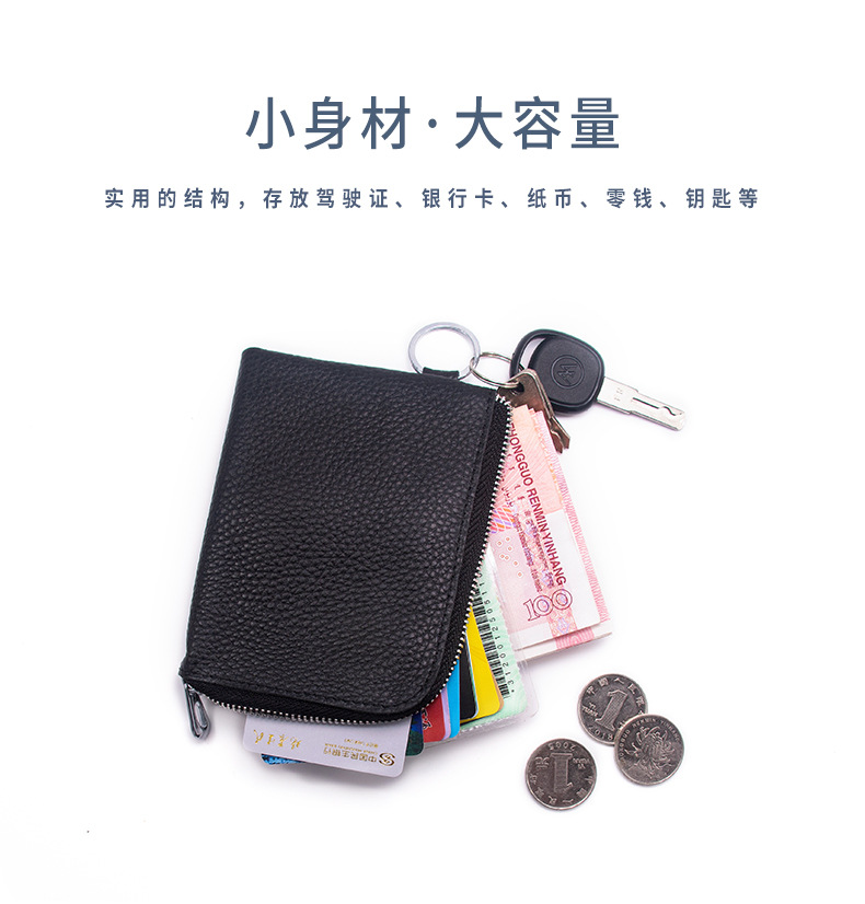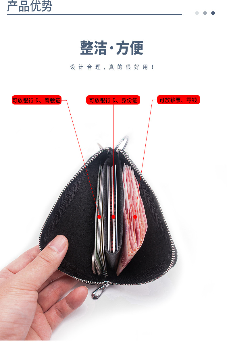 【结构】:大容量拉链零钱袋1个,暗插卡位1个。