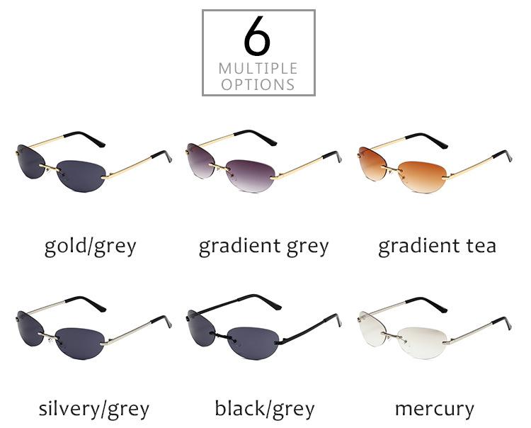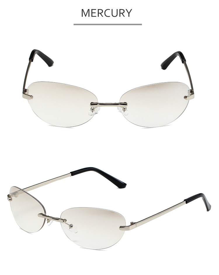 欧美风Y2K复古椭圆猫眼无边框水银太阳眼镜凹造型女款潮街拍墨镜