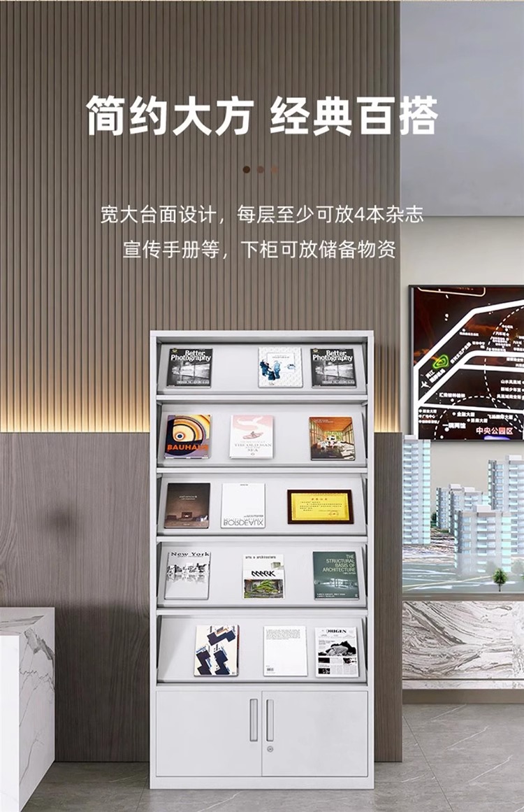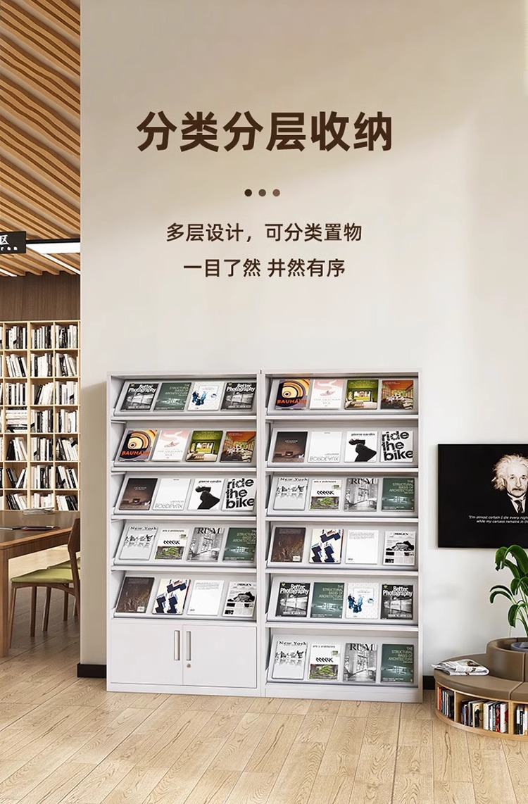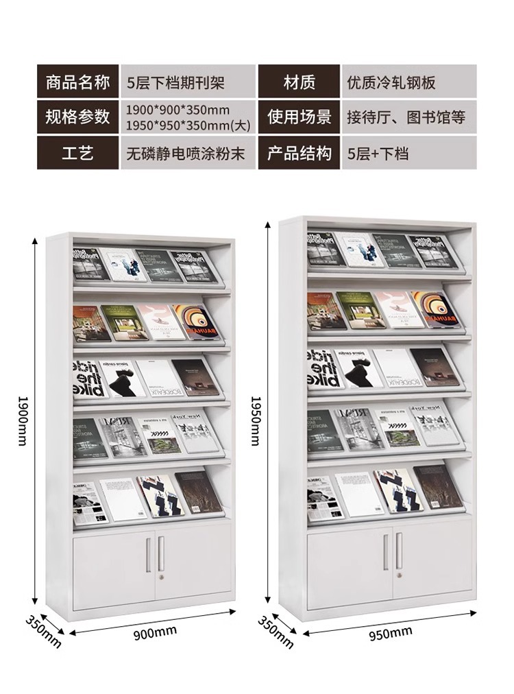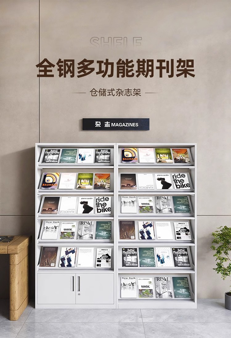 鋼製定期刊行物棚事務室資料ファイル棚デパート新聞閲覧宣伝棚図書館銀行展示棚
