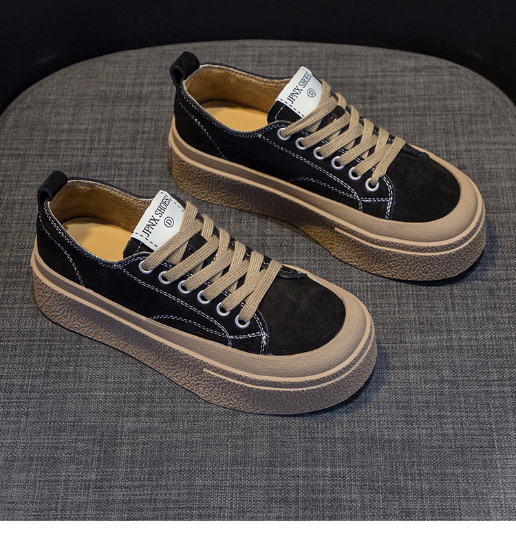 オリジナルの小衆スニーカー女性2025春の新型の厚い底に足の小さいひもの靴の学生の運動のカジュアルシューズが現れます。