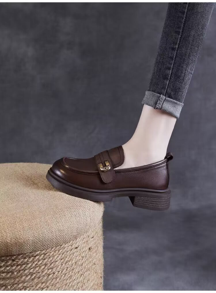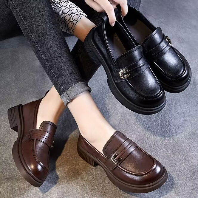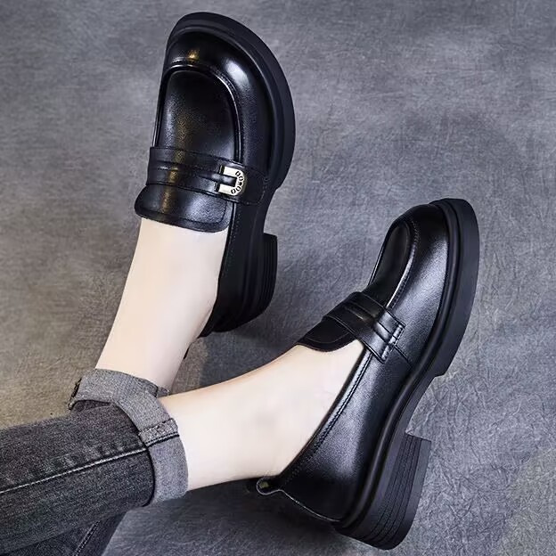 シングルシューズレディースソフトソールレディースシューズフラット厚底2025春秋新作ローヒール革靴英国快適ローファー女性用