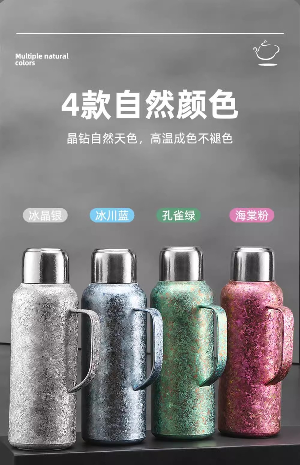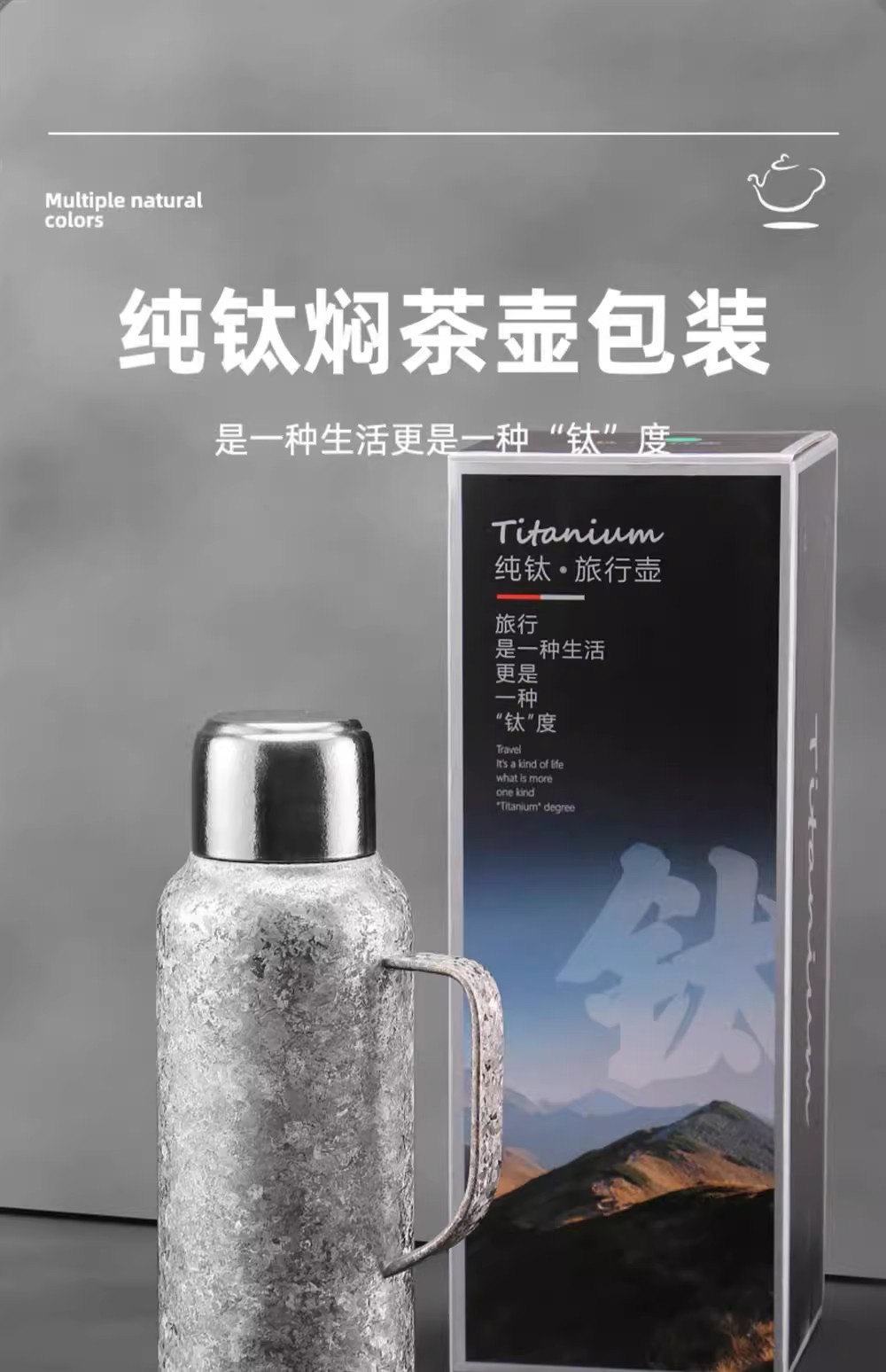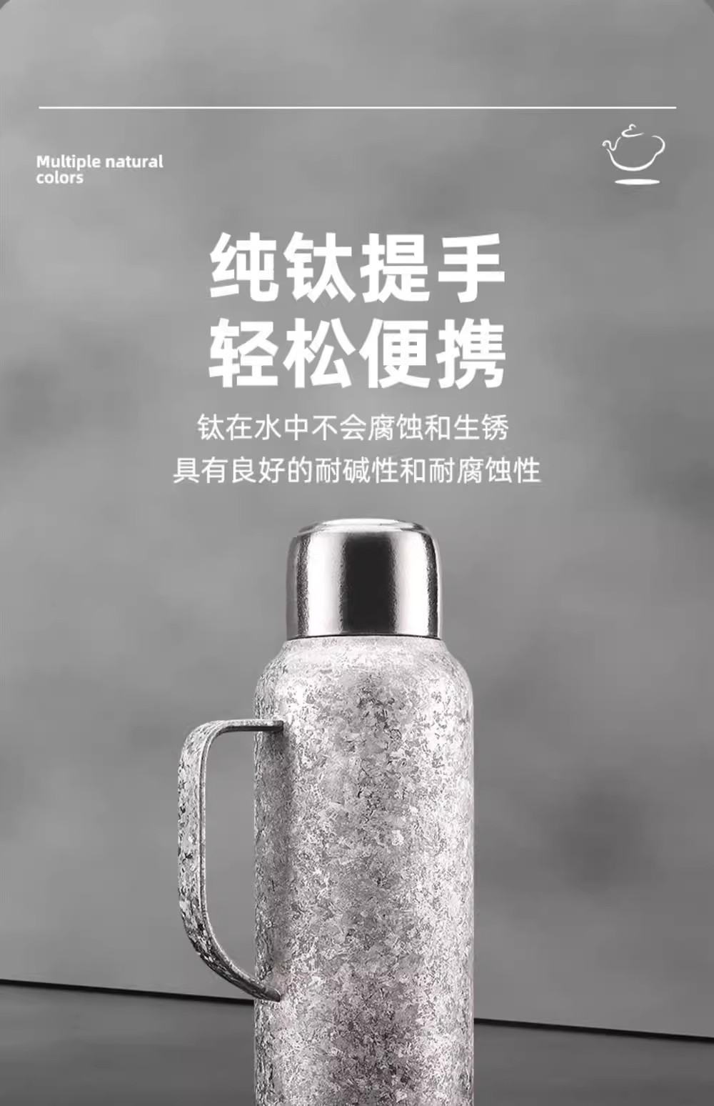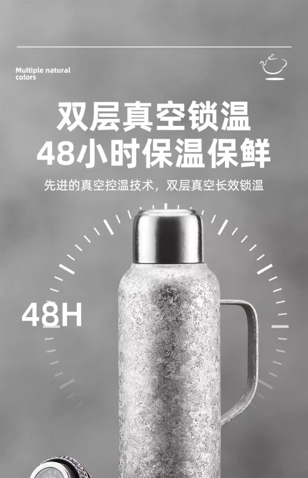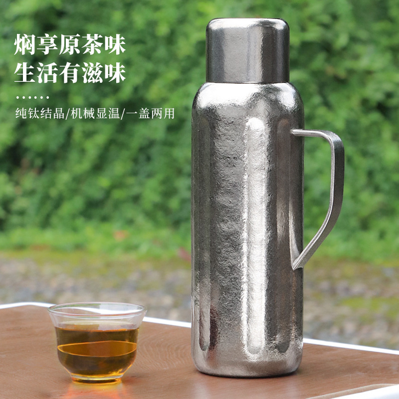 900ML传家壶内外纯钛保温壶带手柄磁吸盖钛杯大容量水壶