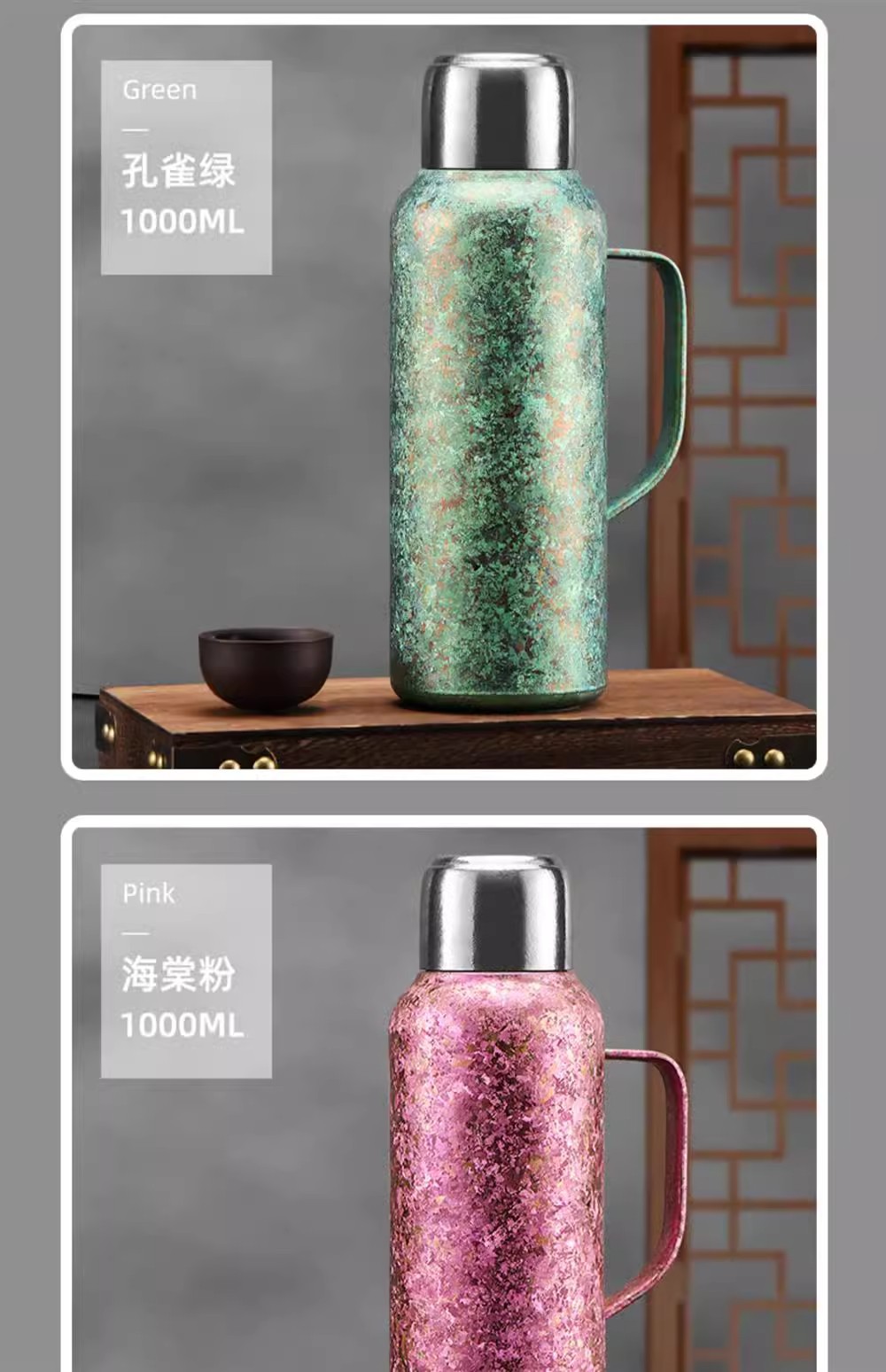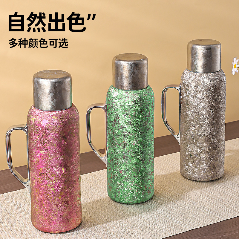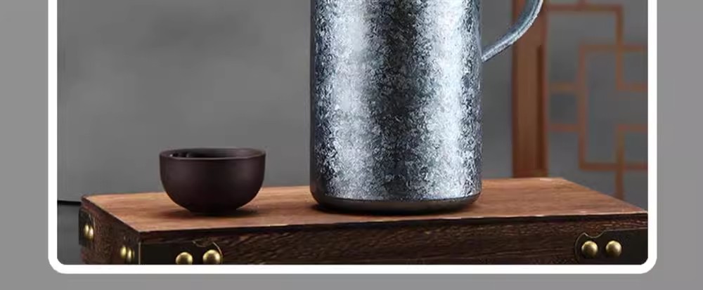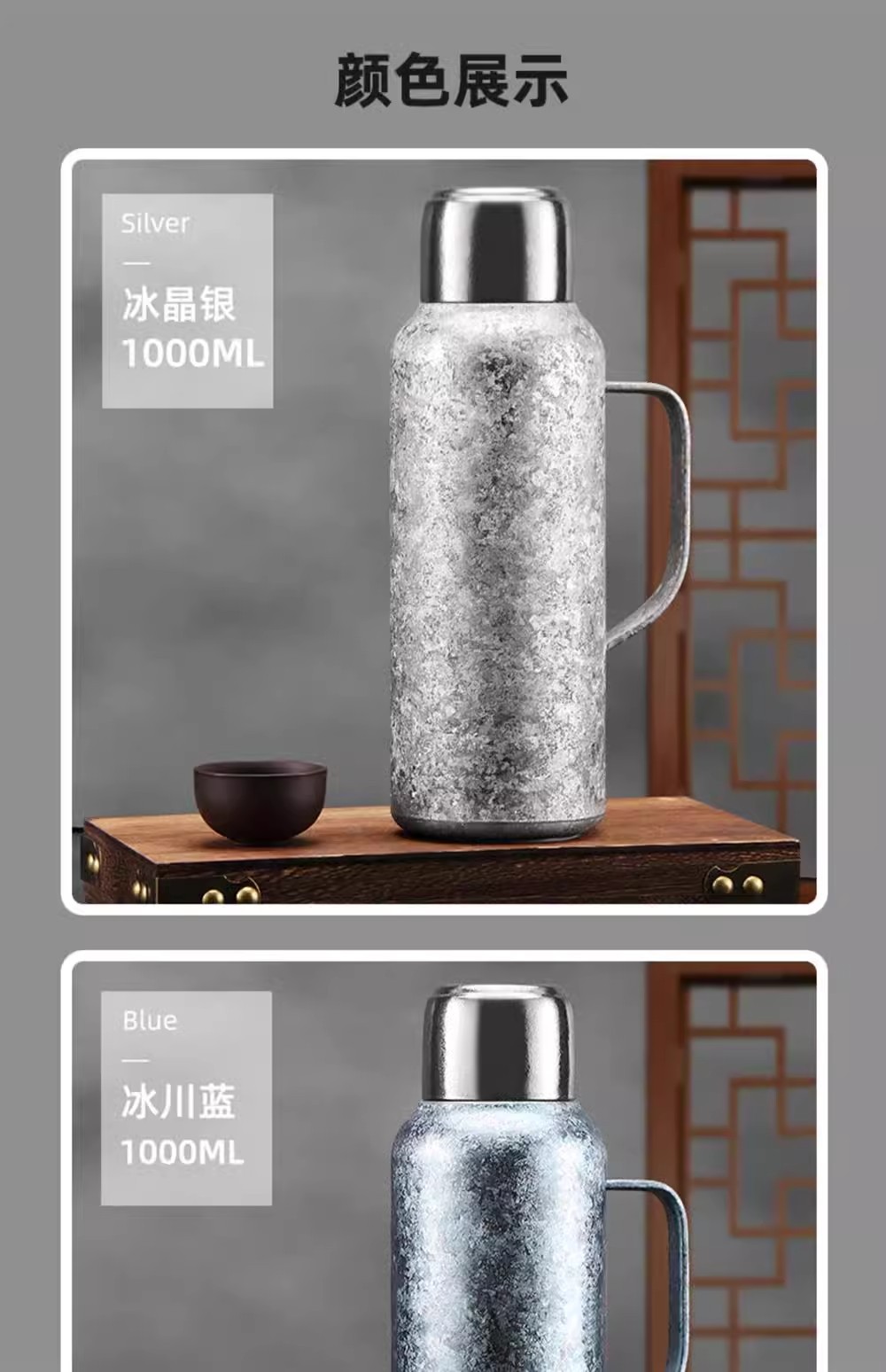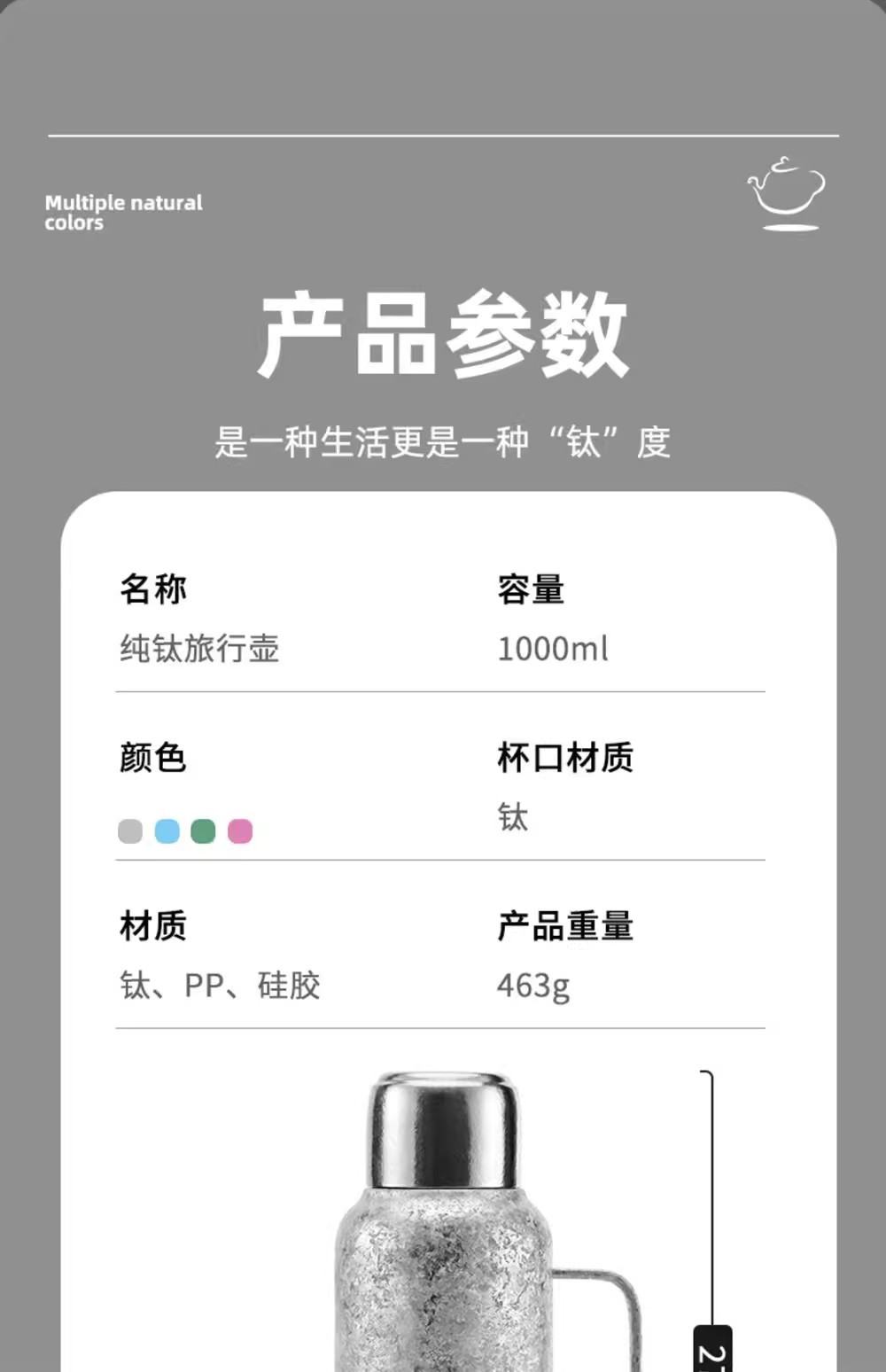 900ML传家壶内外纯钛保温壶带手柄磁吸盖钛杯大容量水壶