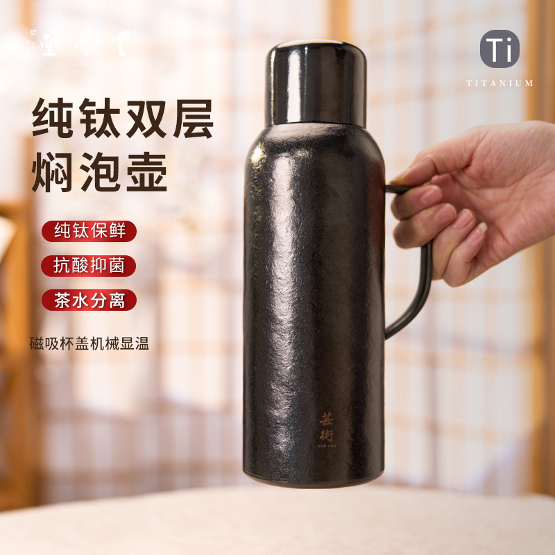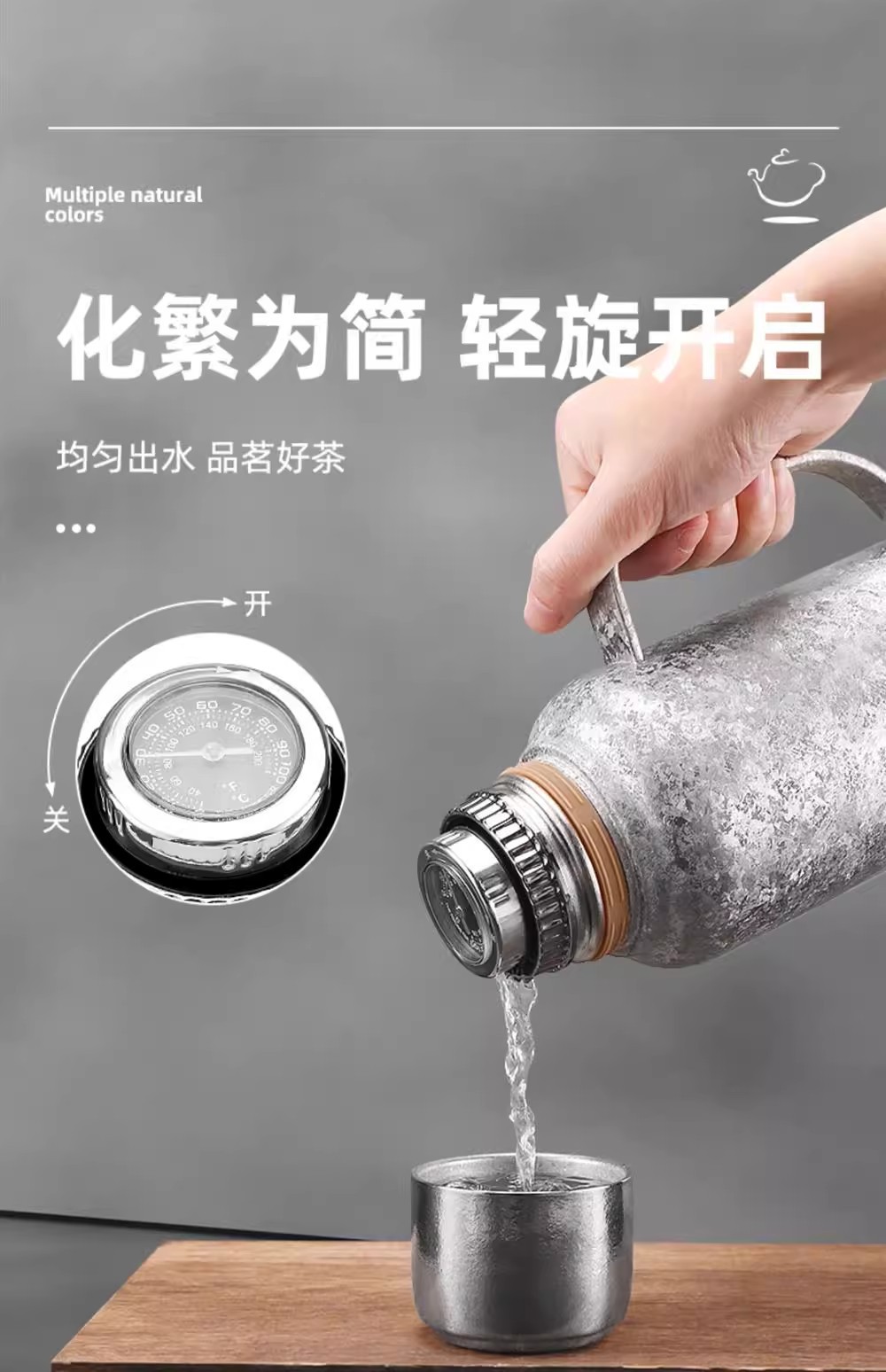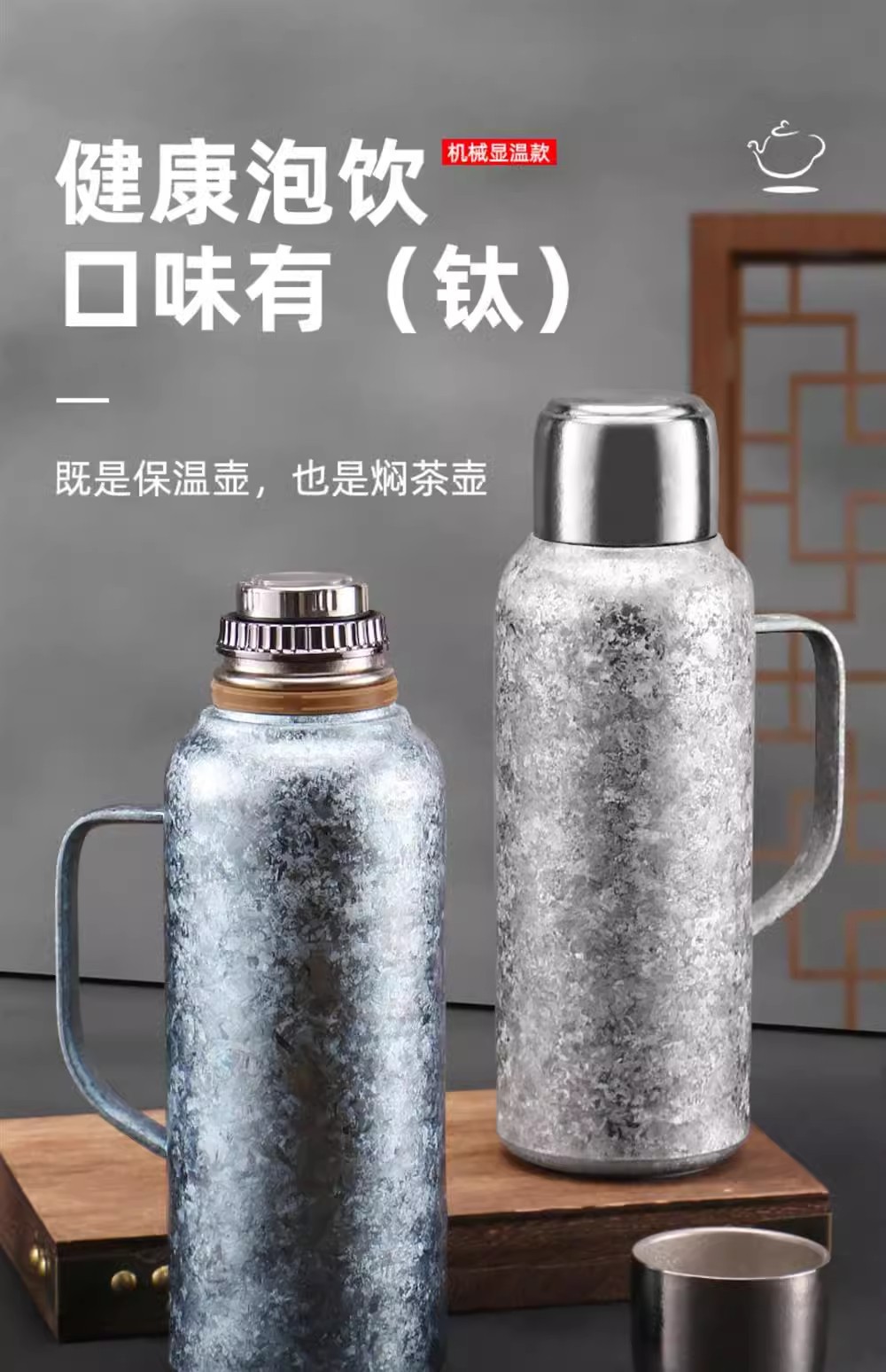 纯钛大容量磁吸杯盖茶水分离保温杯传家壶传世壶机械显温纯钛水壶