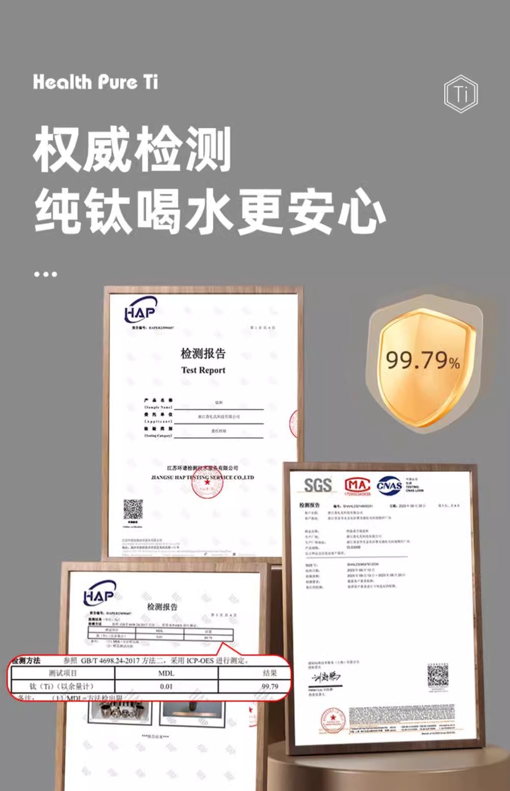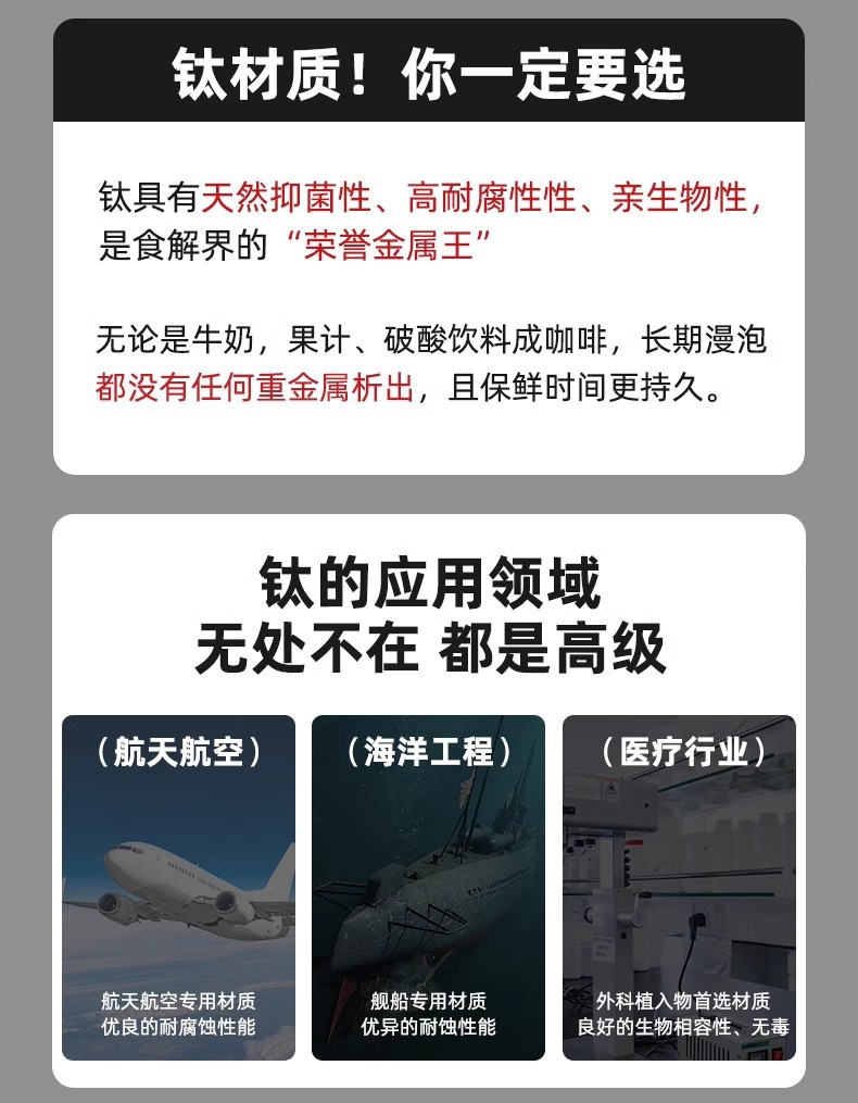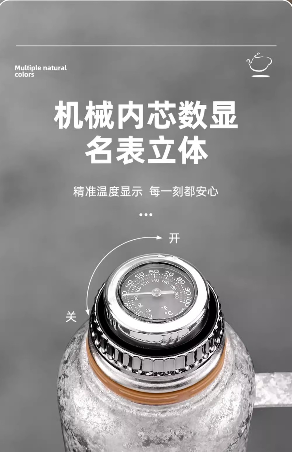 纯钛大容量磁吸杯盖茶水分离保温杯传家壶传世壶机械显温纯钛水壶