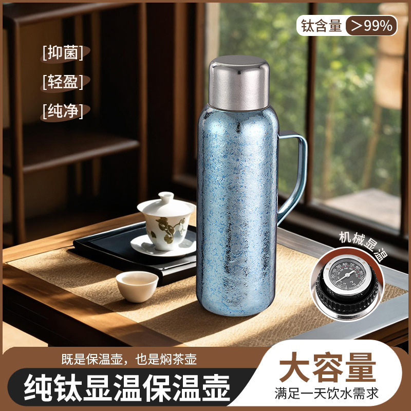 純チタン大容量煮込みティーポット家庭用機械式温度表示チタンケトル断熱オフィスティー作り抗菌ケトル魔法瓶カップ