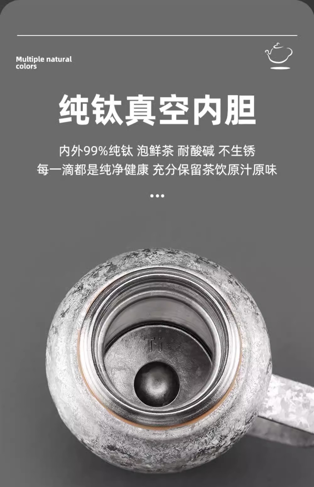 ハイエンド純チタン二重保温カップ大容量家庭用チタンポット保温ポットチタン合金内胆煮込みティーポット伝家ポット
