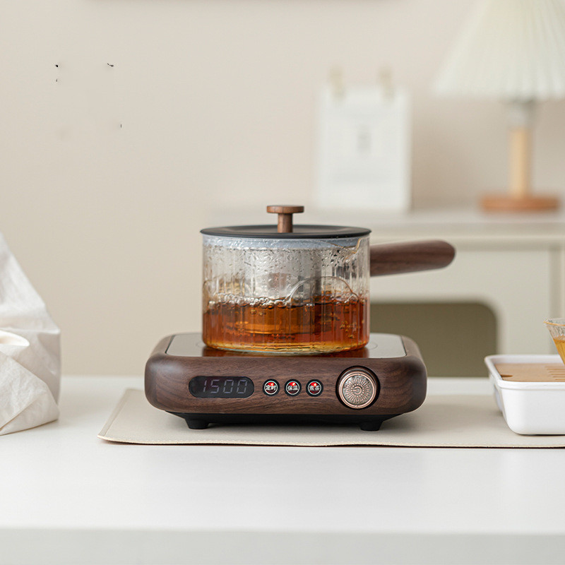 ウォールナット電気セラミックストーブティーメーカー透明磁気ストライプサイドハンドルティーポットセット小型家庭用ガラスケトル