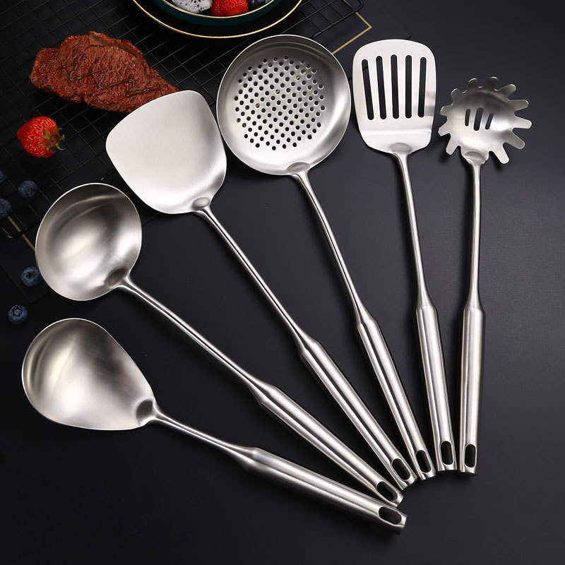 304ステンレスの鍋のシャベルのスープのスプーンの厚いハンドルのやけど防止のシャベルの調理のシャベルの台所用品のセットの家庭用の炒め物のシャベル