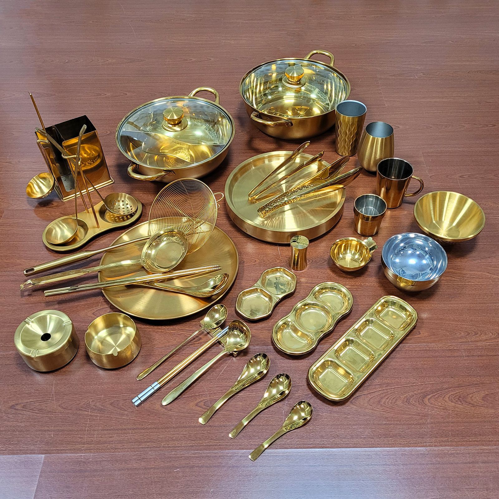 304不锈钢金色餐具套装酒店火锅商用家用火锅汤勺漏勺餐具用品