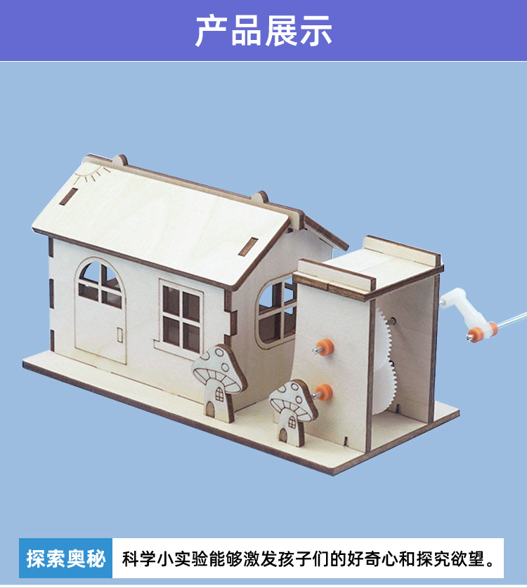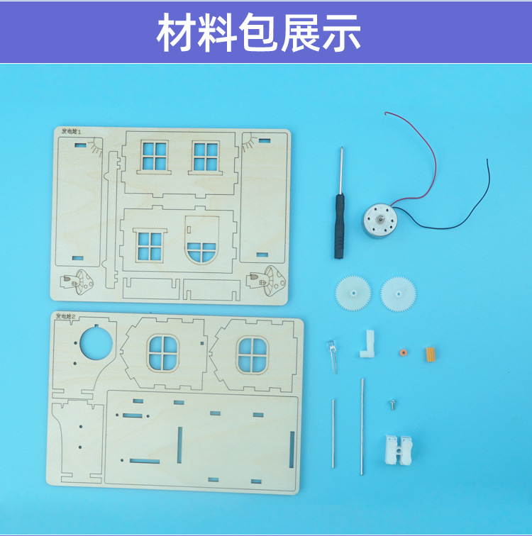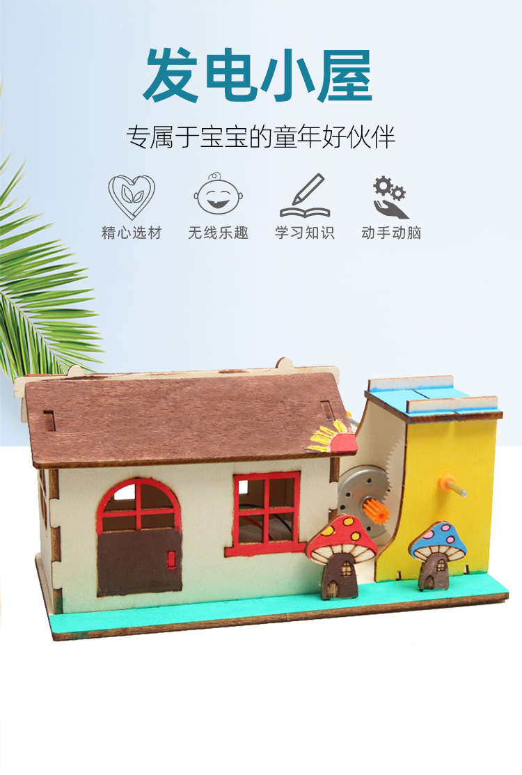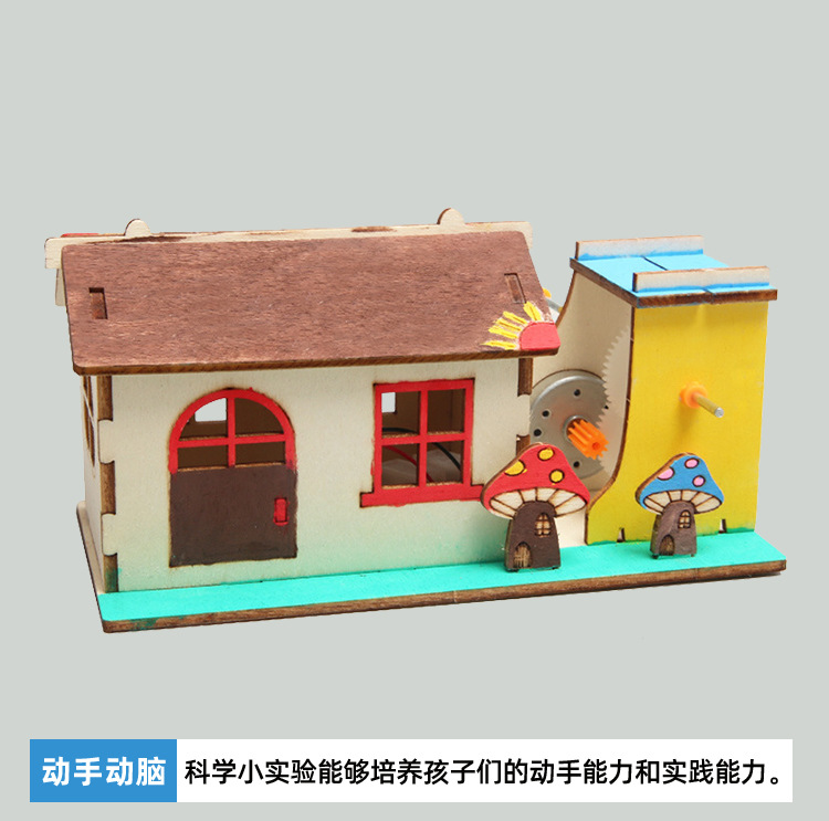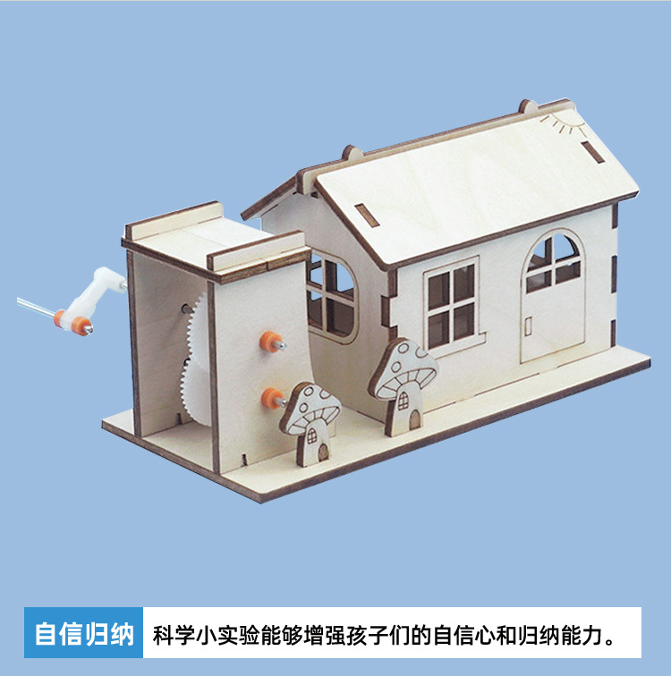 手回し発電小屋児童木製教具科学技術小製作小発明手作りdiy組立模型材料