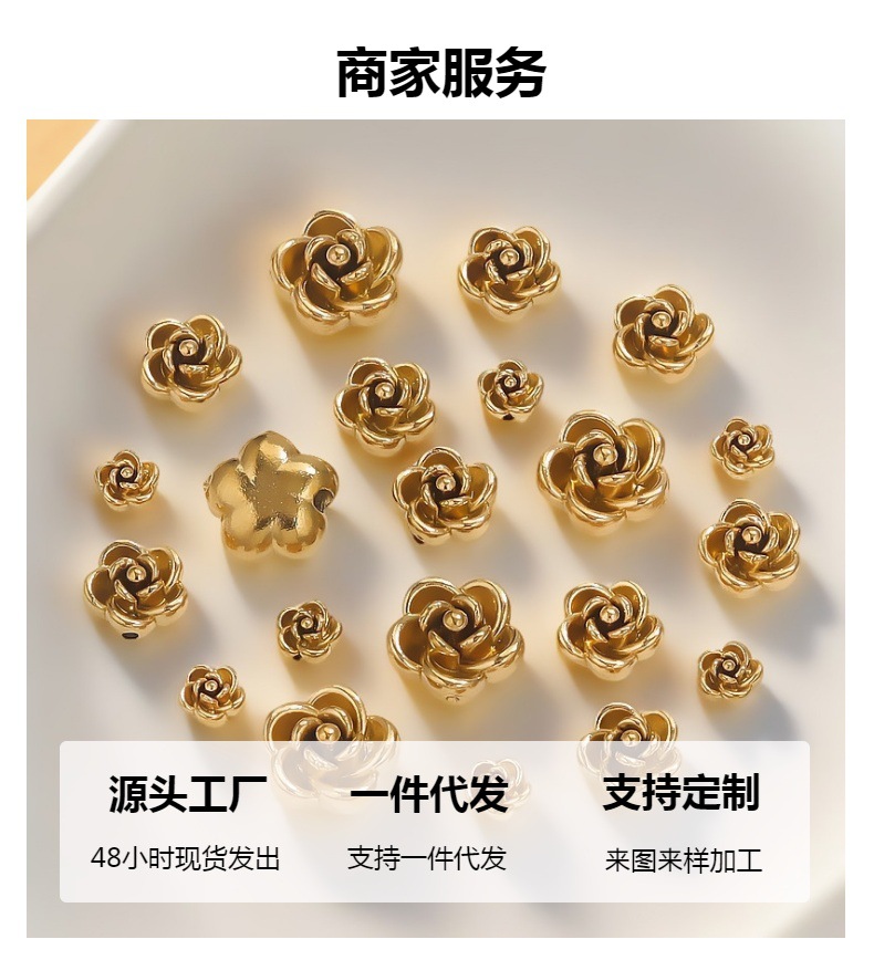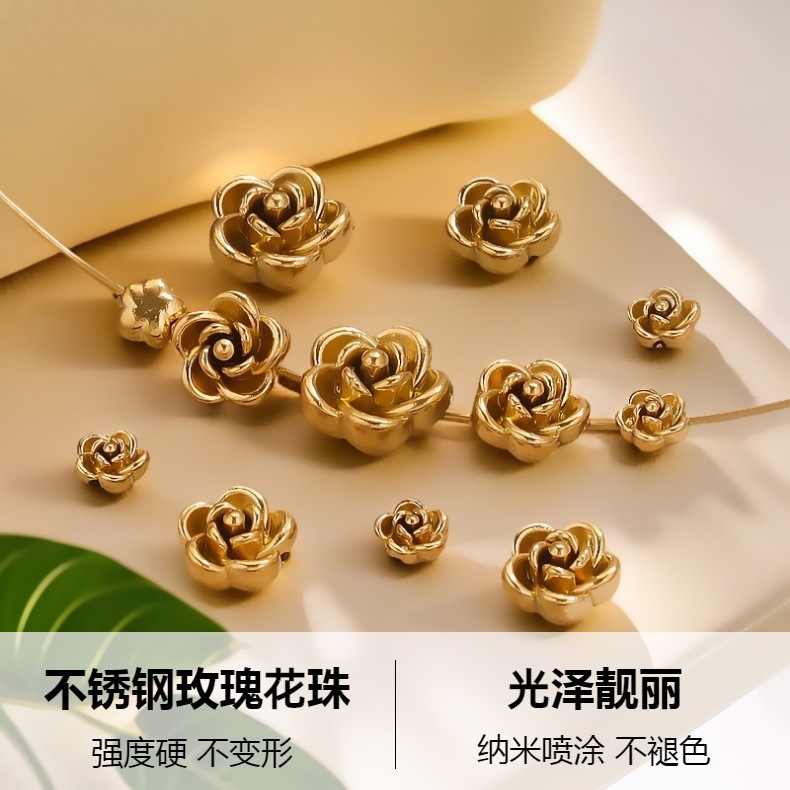 ステンレス3Dローズビーズ手作りピアスビーズアクセサリーブレスレットアクセサリーDIYネックレス卸売アクセサリー