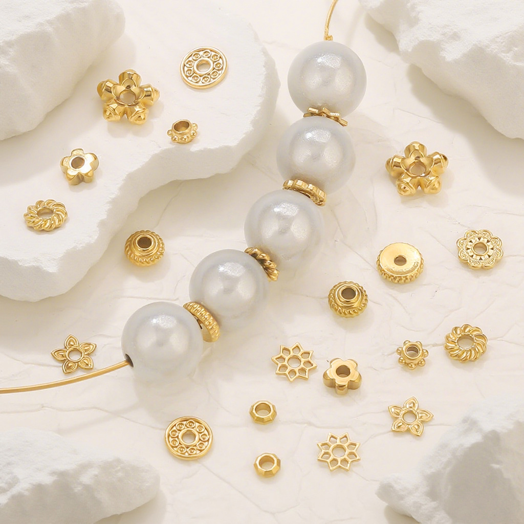 镀18K真金色DIY不锈钢饰品配件立体珠子花托项链手链串珠花托隔片