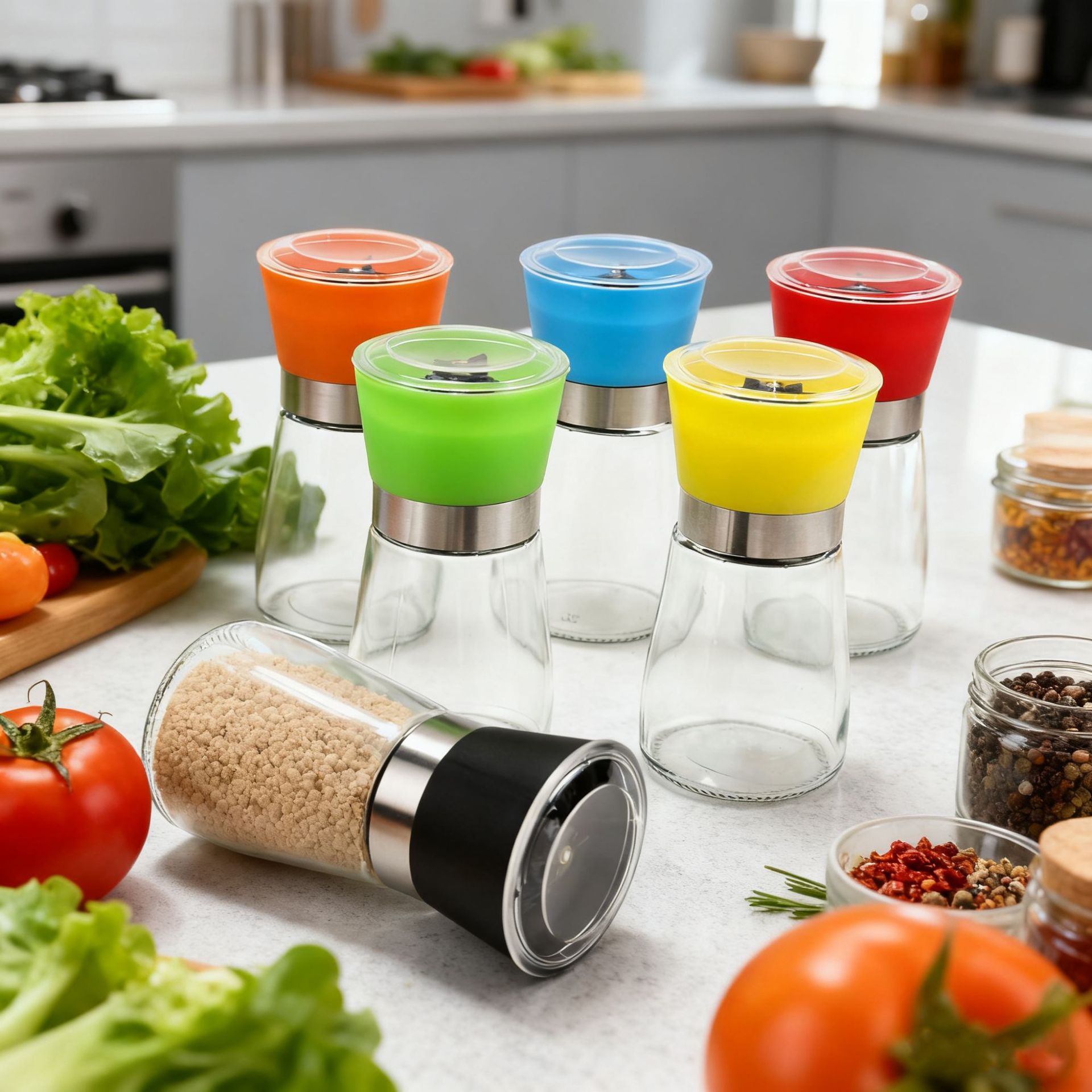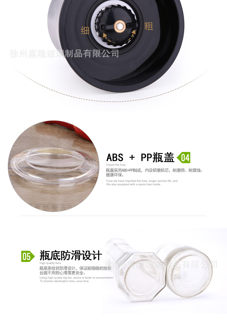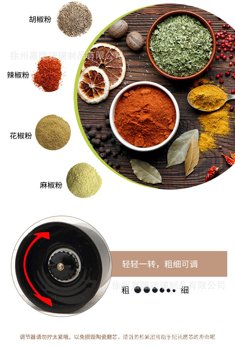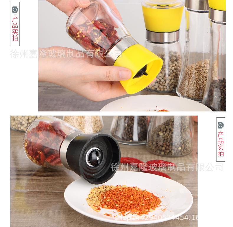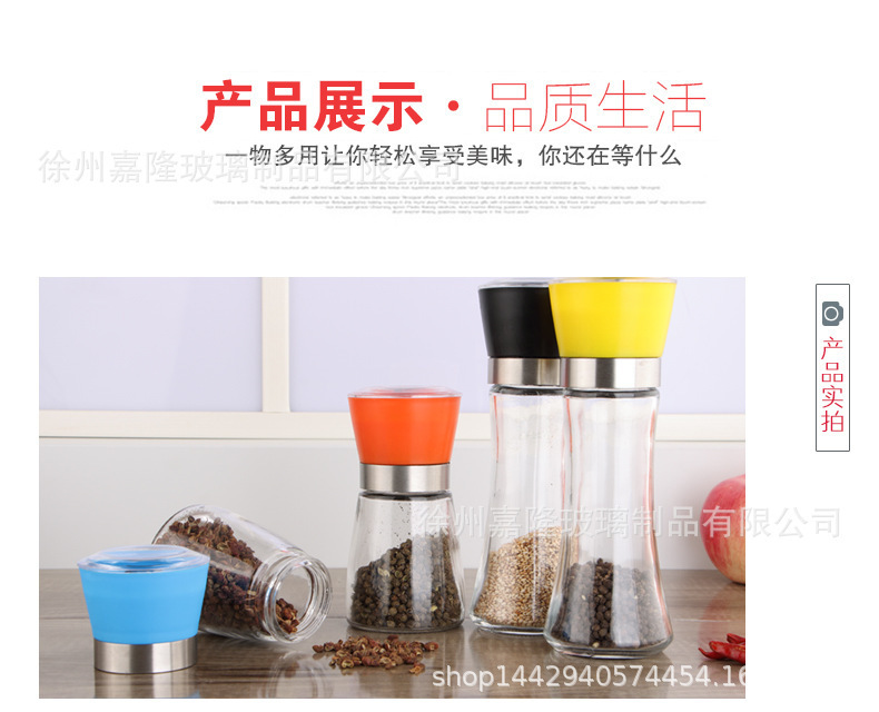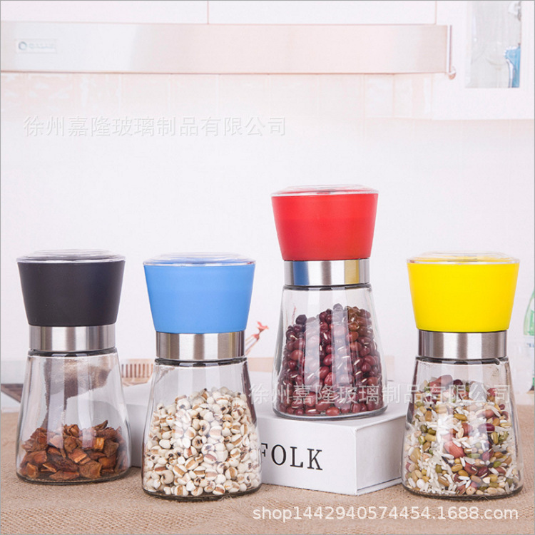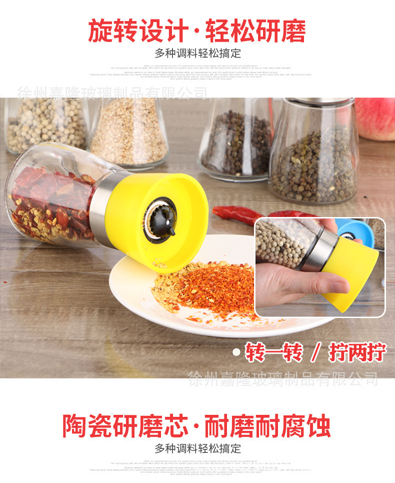 多功能厨房家用胡椒研磨器玻璃瓶海盐花椒研磨器调料瓶调料罐批发