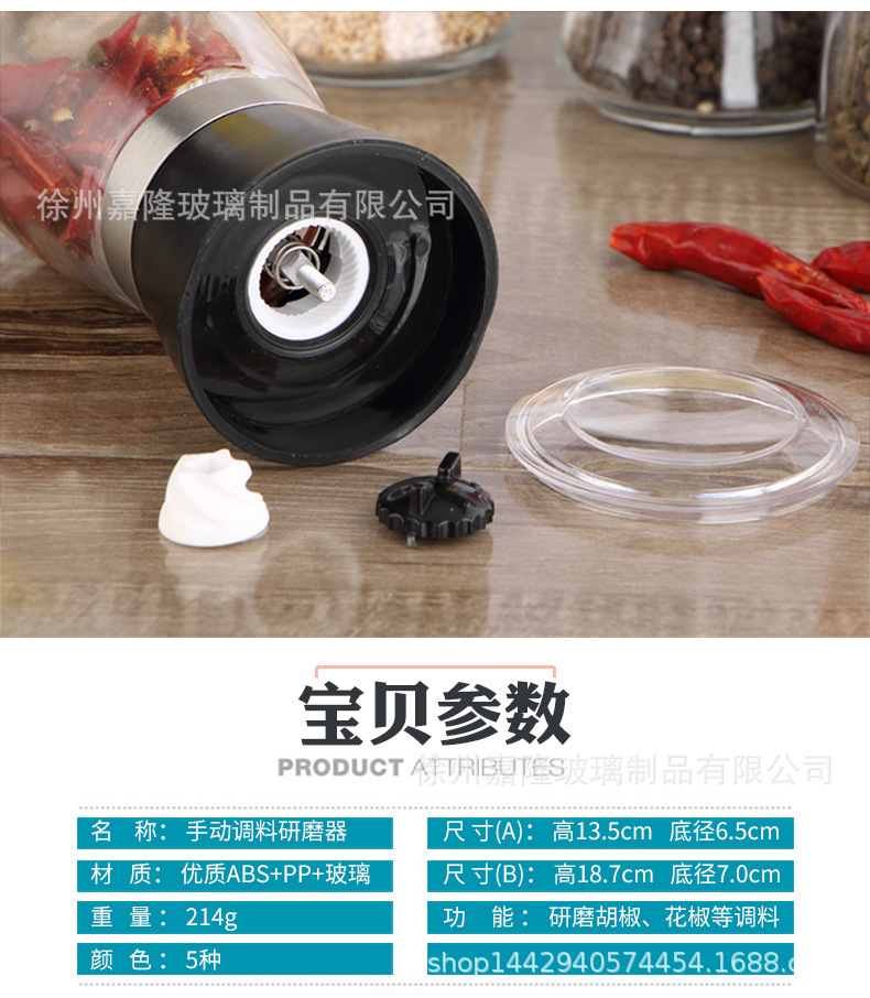 胡椒研磨器サンショウ粉黒胡椒粉粒粉砕器手動粉砕器研磨瓶ガラス