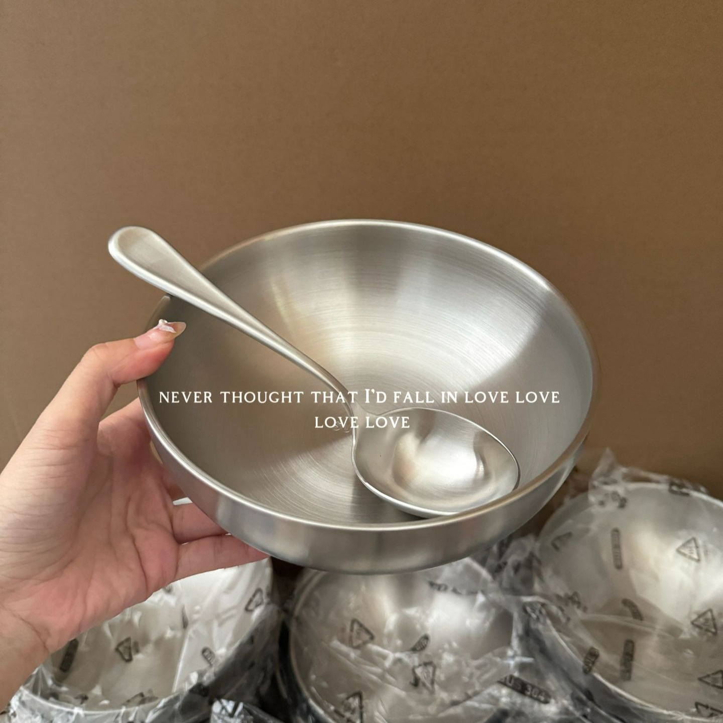 ライト高級 304 ステンレス鋼ボウルツイル二重層抗火傷デザート砂糖水ボウルレストランライスボウル家庭用鳥の巣スープボウル