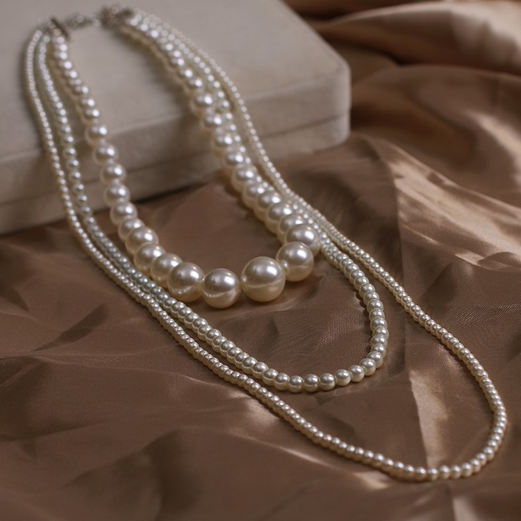 多層ガラス真珠ネックレス女性ファッションタイプのネックチェーンはレトロな女性のセーターチェーンを重ねて秋冬