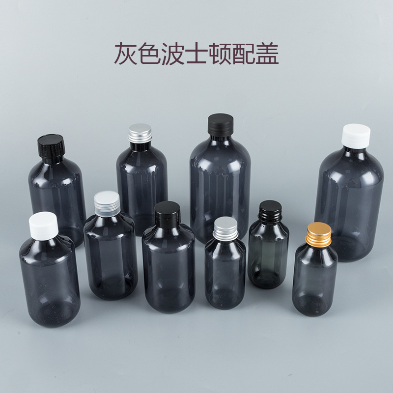 スポットグレーボストンボトルシャンプーシャワージェルハイドロゾル包装100ml-500mlロングネックラウンドショルダー