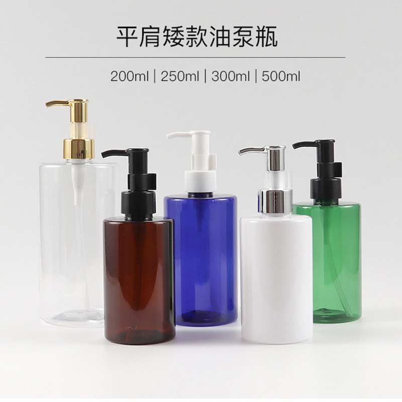 200ml 250ml 300ml 500ml平肩矮太分注ボトルuvクレンジングオイルポンプ差込口ローションポンププレスボトル