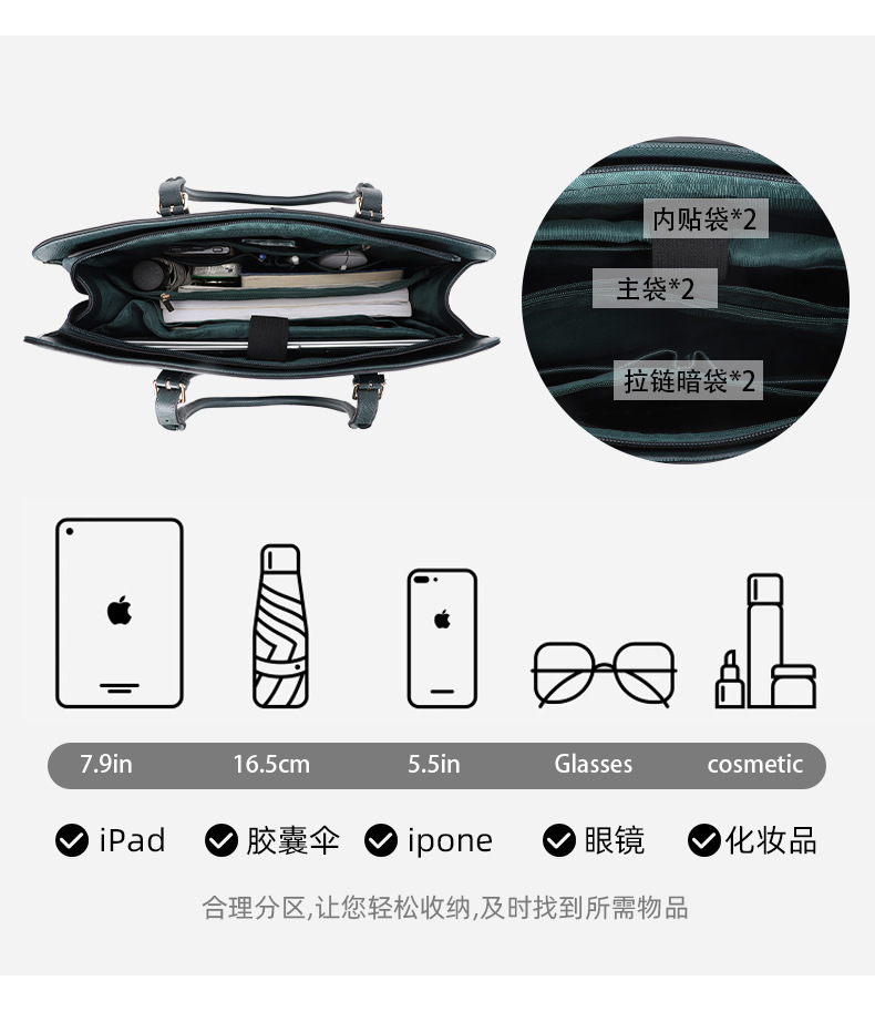 バッグの内部構造 ジッパーシークレットバッグ,書類バッグ,コンピューターポケット