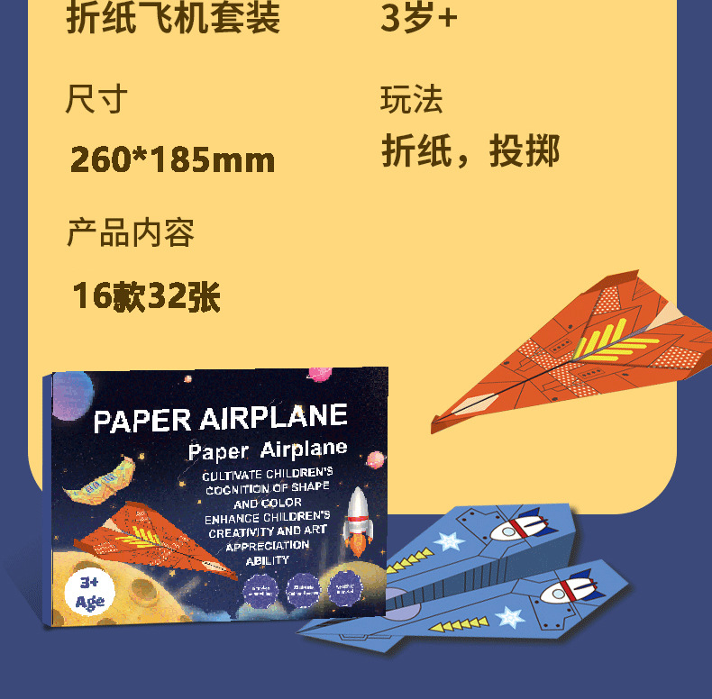 紙飛行機子供手作り折り紙3D立体色紙子供クリエイティブ折り紙知育玩具カラー紙飛行機