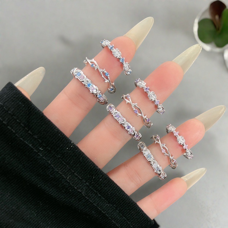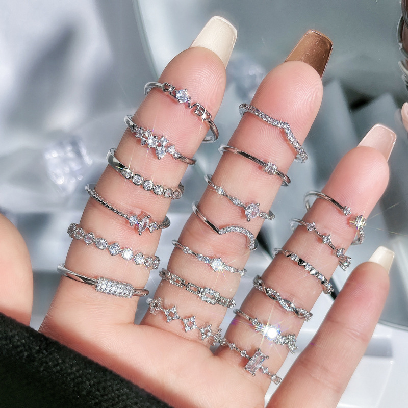 シルバーカラーリングジルコンオープンリングリングセット女性冷たい风気质カップルリングファッション个性食指戒潮