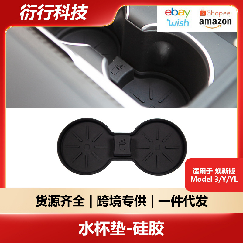 テスラ新型モデルY3YLセンターコンソール用シリコン製カップマット、3Wカップリミッター、滑り止めマット、簡単装着