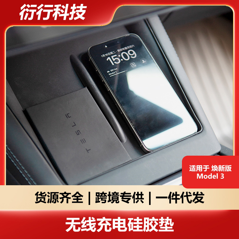 テスラ新型モデルY3YLセンターコンソールワイヤレス充電車載3W滑り止めマット車載充電シリコンに適用