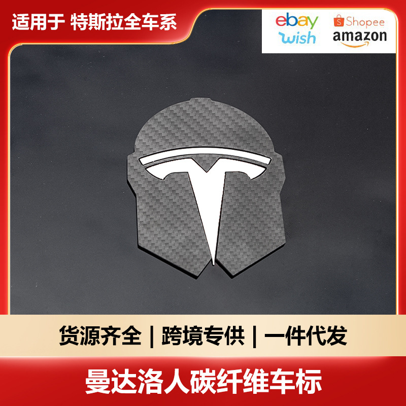 テスラ新型モデルY3YLマンダロリアンヘルメット車ロゴカーボンファイバーアクセサリー個性的な立体デザインに適しています