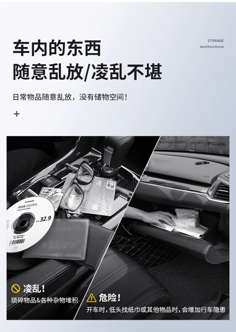 テスラ新型モデルY3YLのセンターコンソール収納ボックス、可動式トレイ、ペーパータオル収納に適しています。
