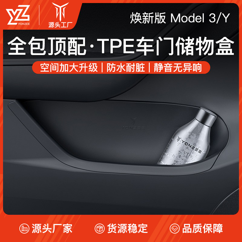 テスラYL新型モデル3Y車ドア収納ボックスTPEフルカバー車ドア収納オーガナイザーに適用