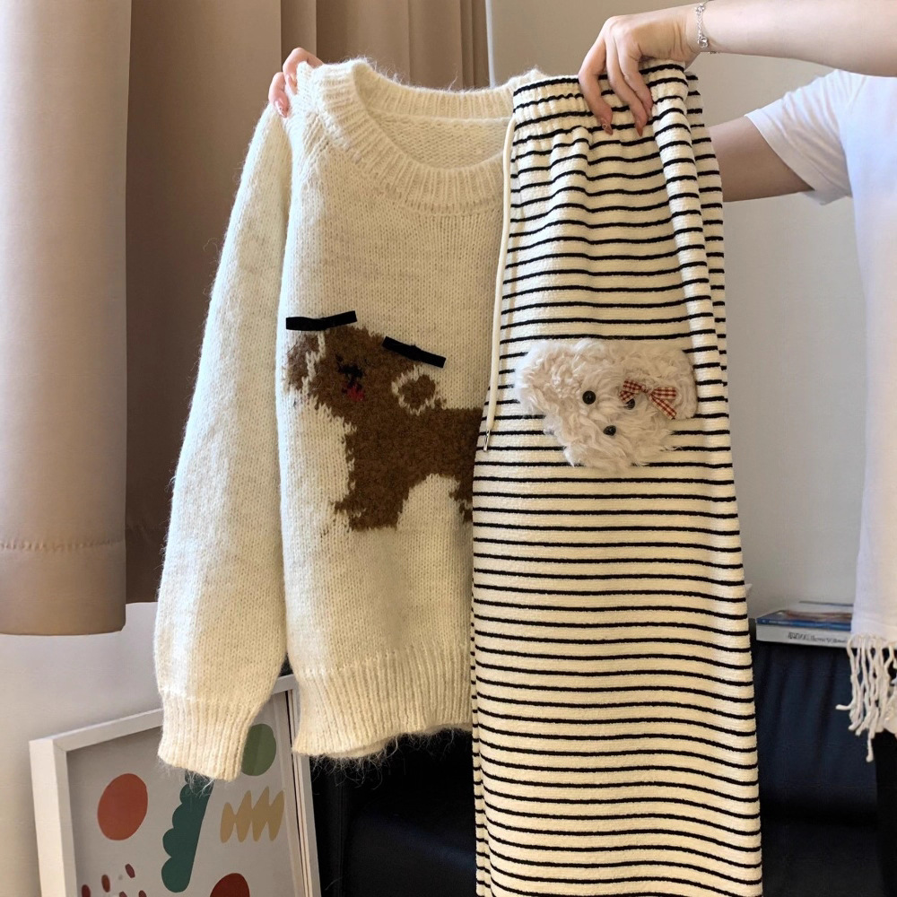 慵懒风秋冬穿搭小狗圆领套头毛衣针织衫甜美厚实软糯韩系上衣内搭
