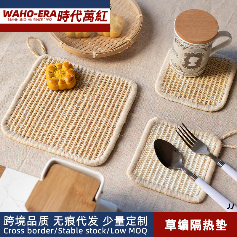 原木風日本式剣麻パーマ防止断熱鍋パッド食卓に厚い耐高温断熱パッド