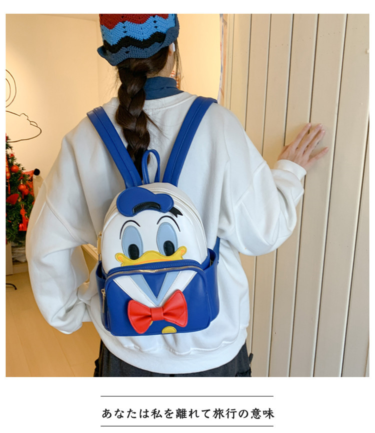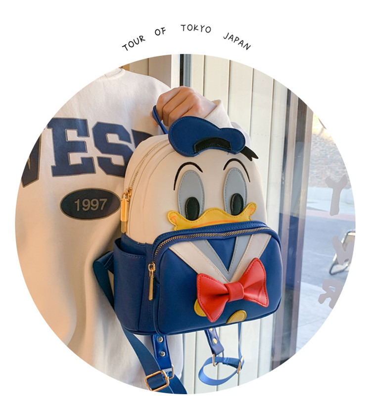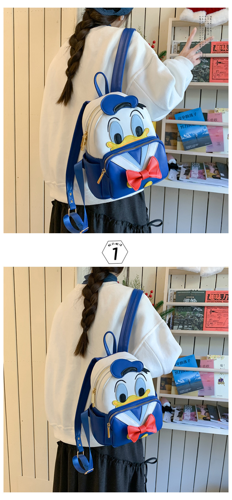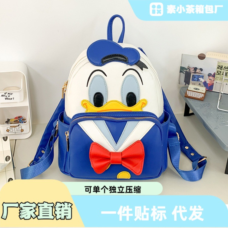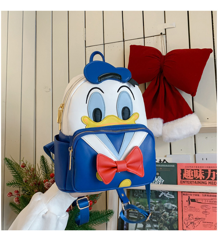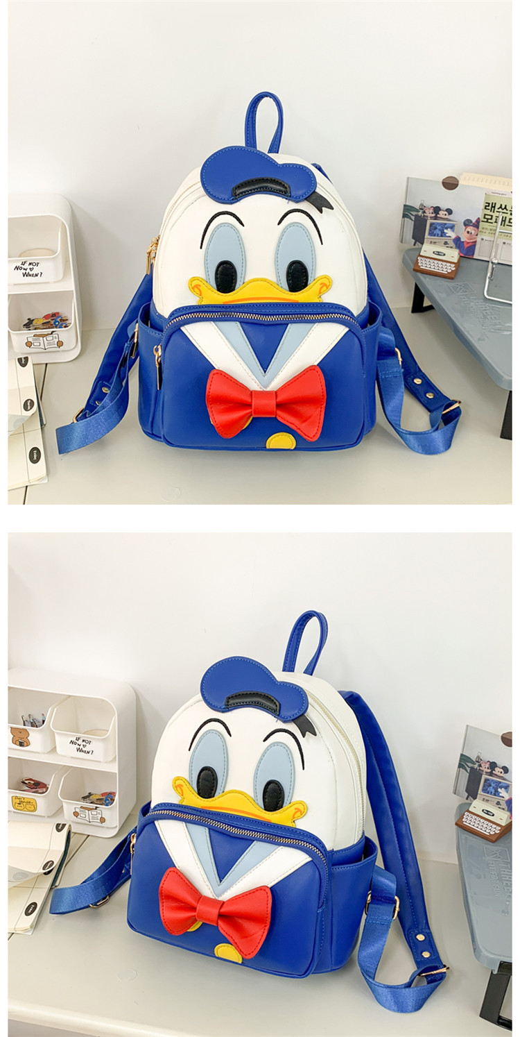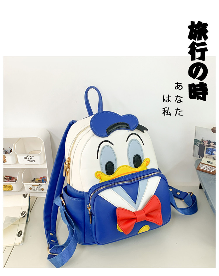 漫画の帽子のアヒルのpu皮の定型モデルのリュックサック2025新型は街を出て遊びます。