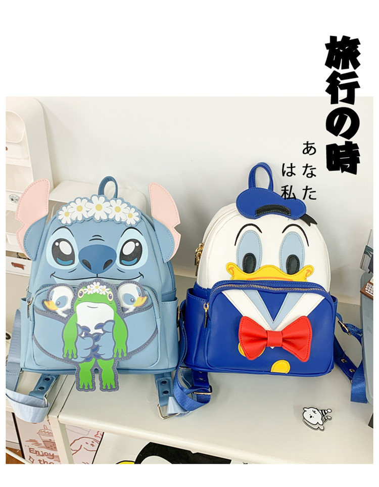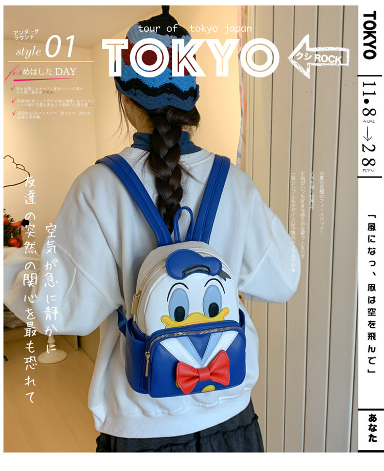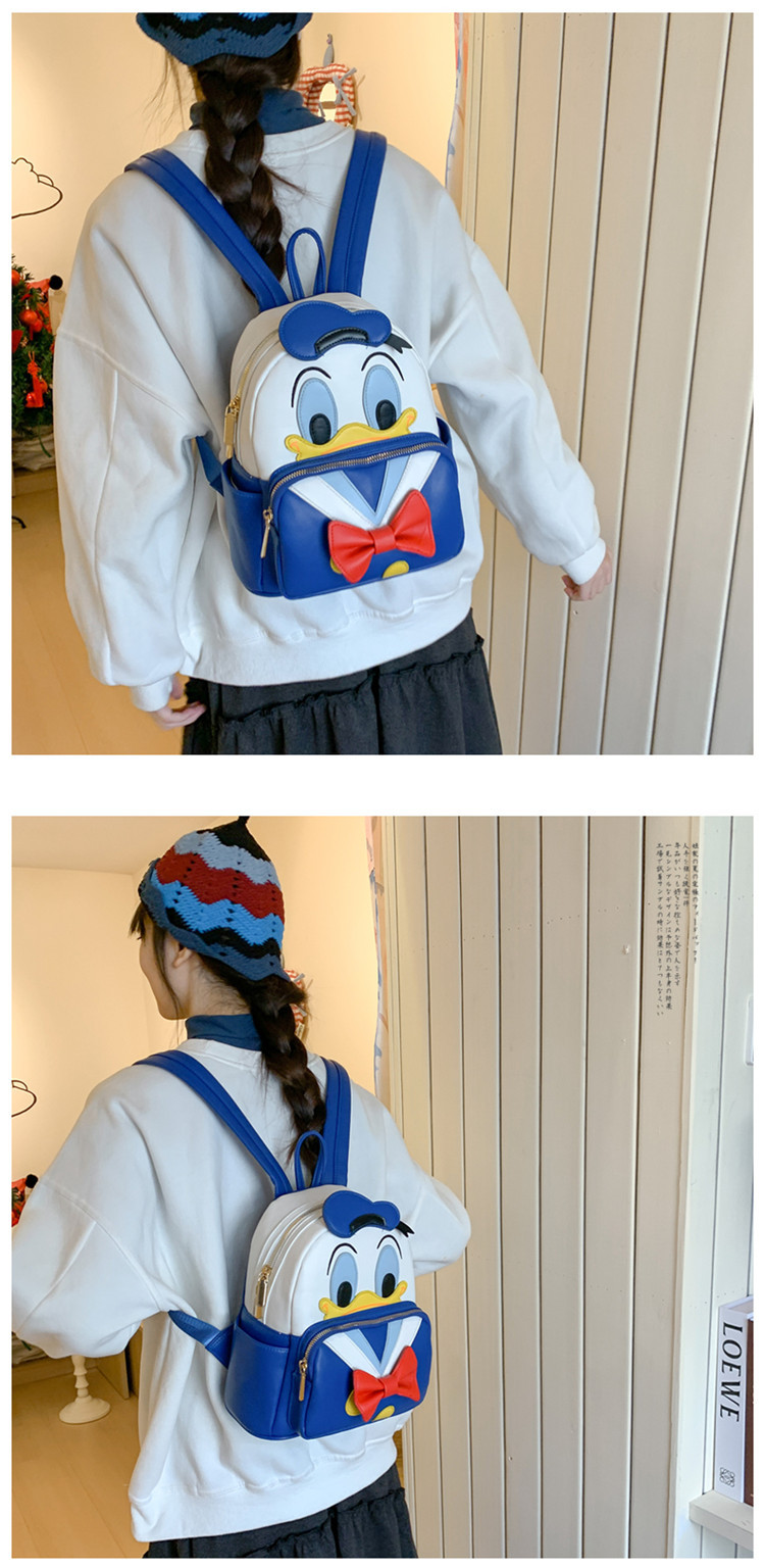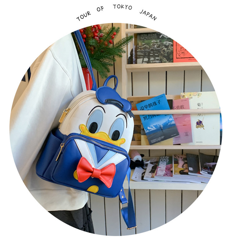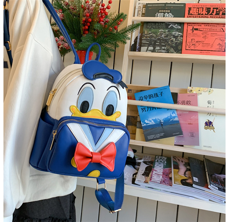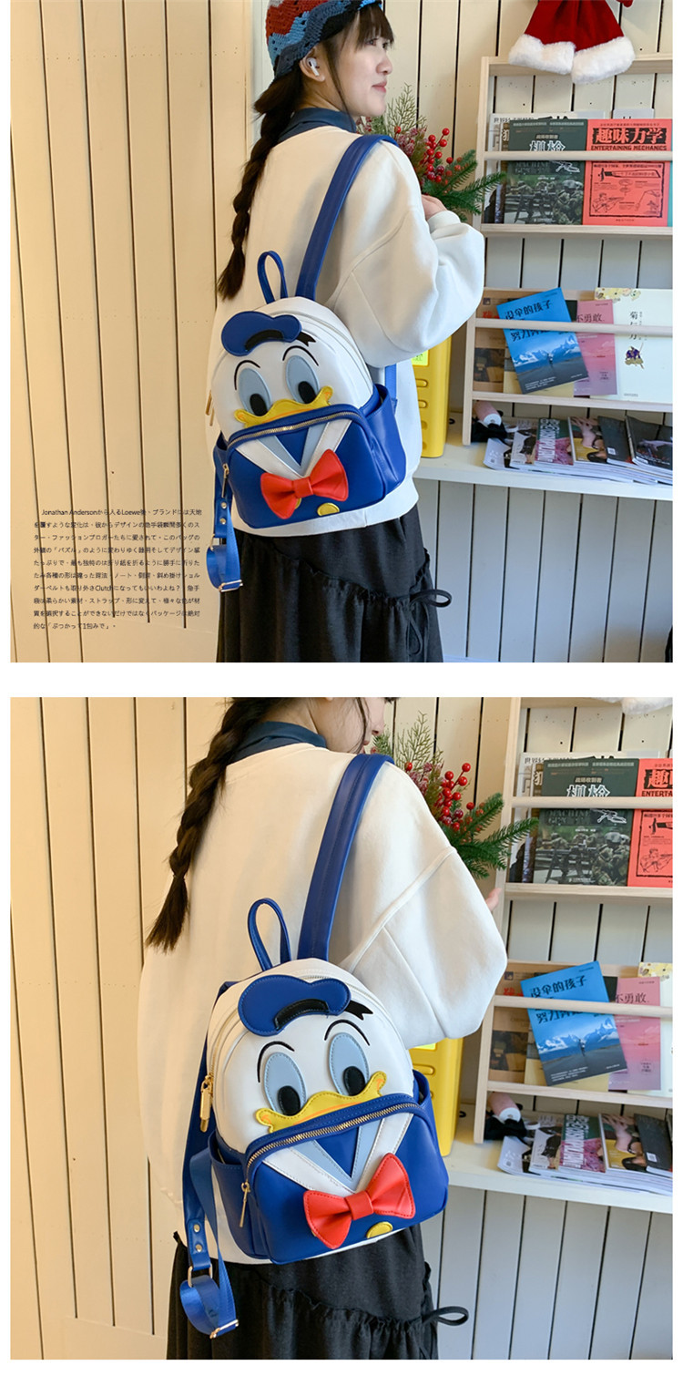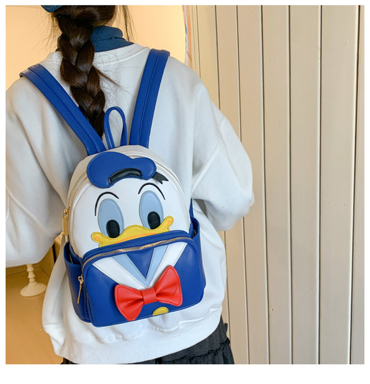 漫画の帽子のアヒルのpu皮の定型モデルのリュックサック2025新型は街を出て遊びます。