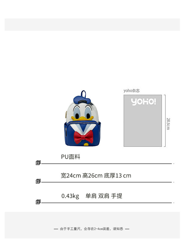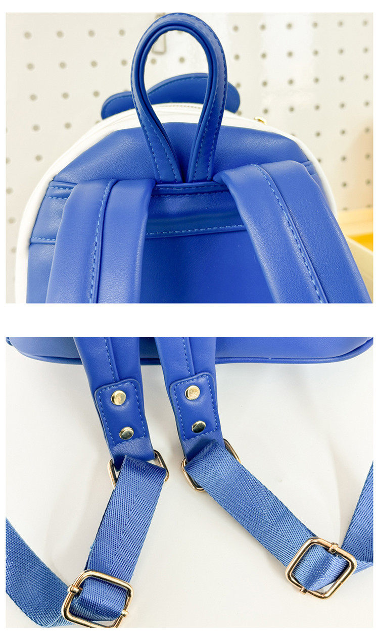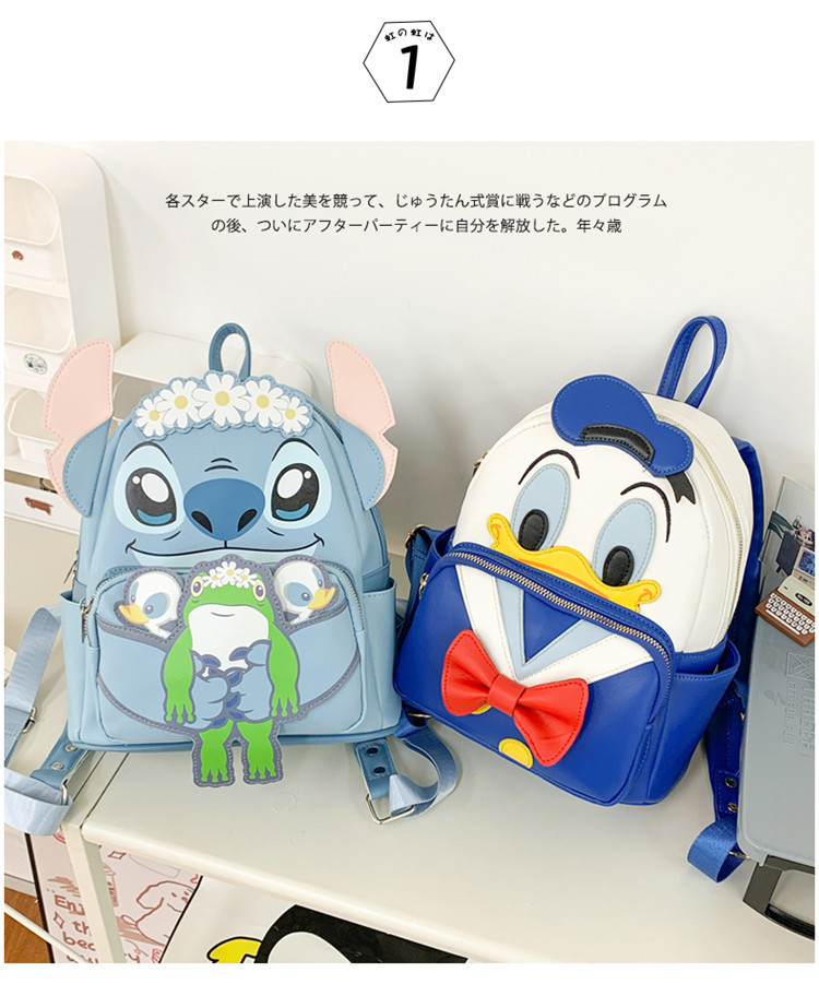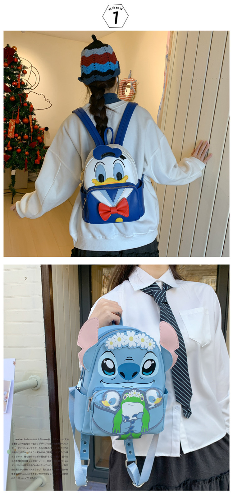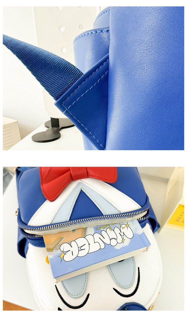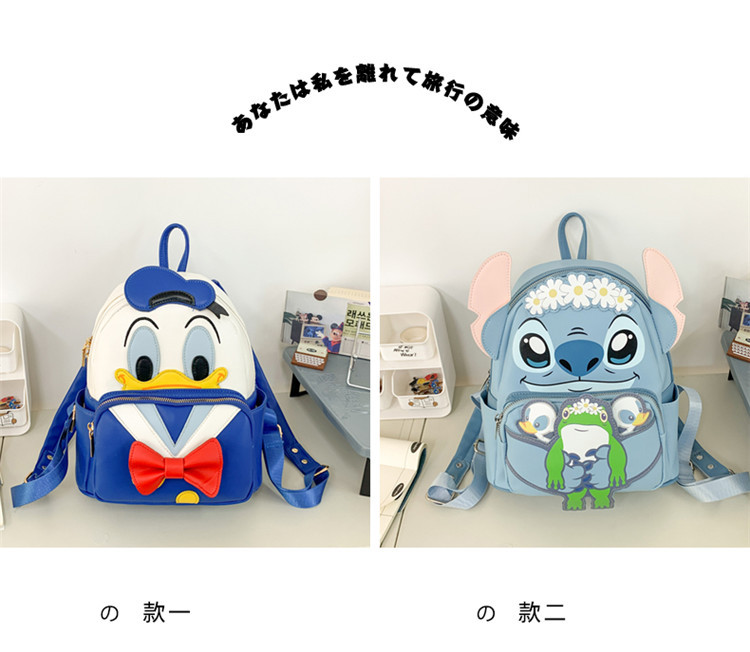 漫画の帽子のアヒルのpu皮の定型モデルのリュックサック2025新型は街を出て遊びます。