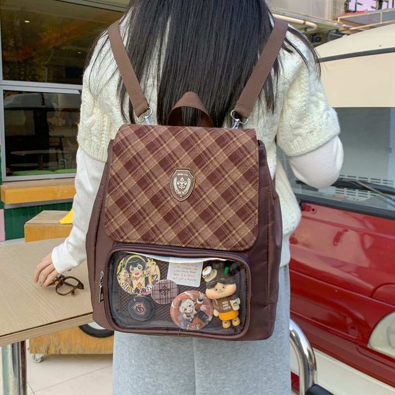 英伦学院风翻盖双肩包女美拉德复古菱格小背包大容量时尚休闲背包