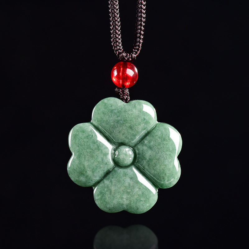 天然のa商品の翡翠の四つ葉のクローバーのペンダントの豆の玉のペンダントの花の女性の金の玉のペンダントの四会の玉器の卸売り