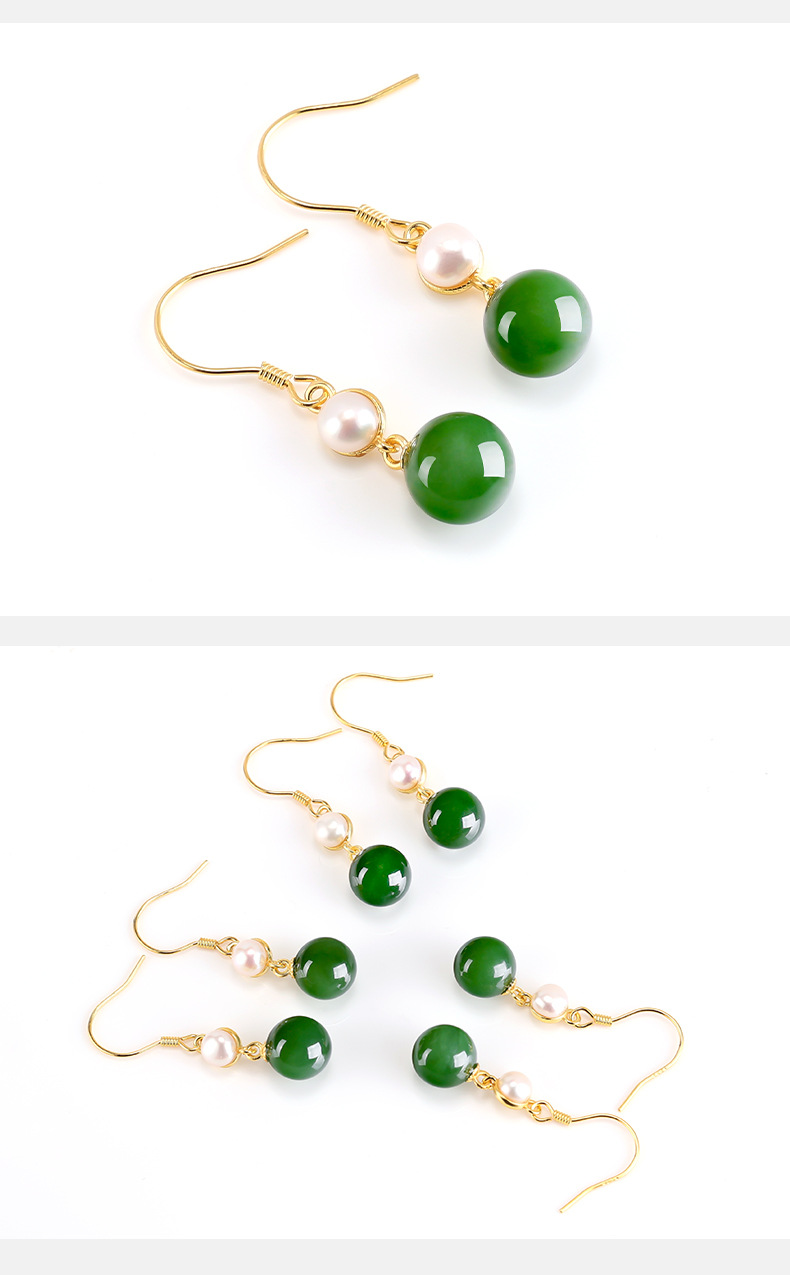 純正品S925銀は天然和田玉碧玉玉玉玉イヤリングをはめ込んでいます。