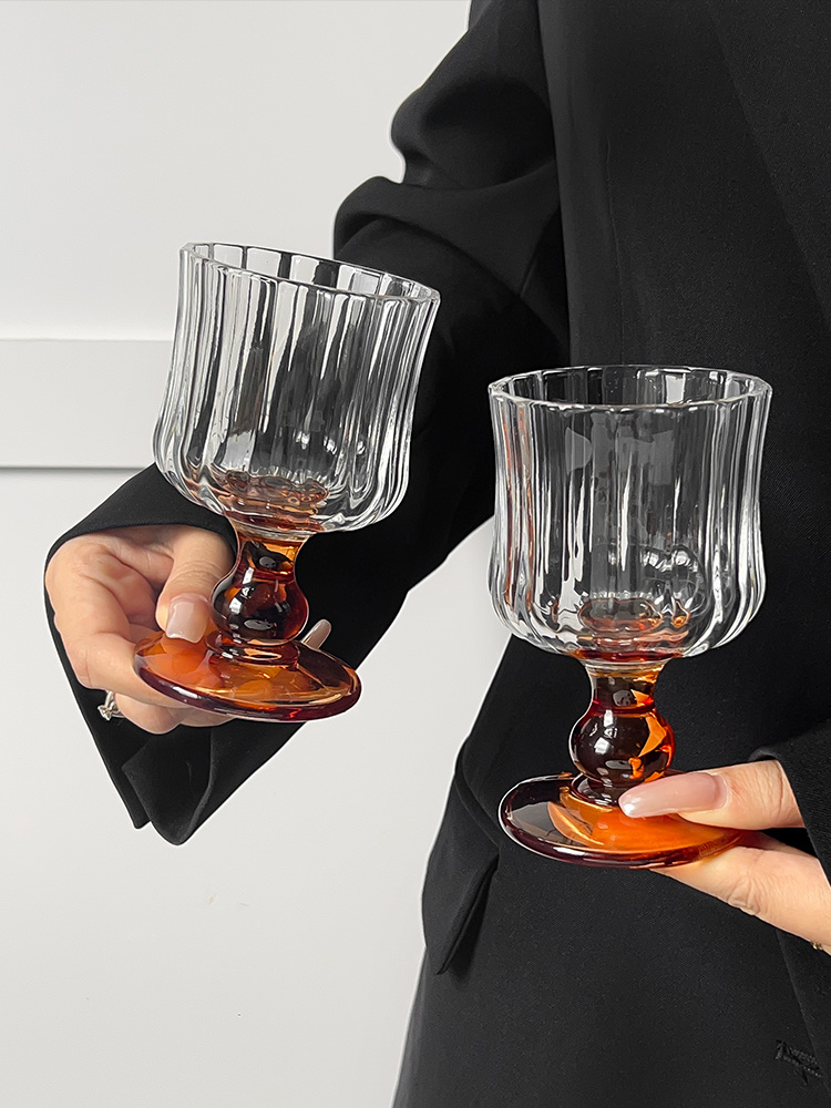 ins风复古轻奢百褶酒杯高脚杯家用氛围感香槟杯鸡尾酒杯法式