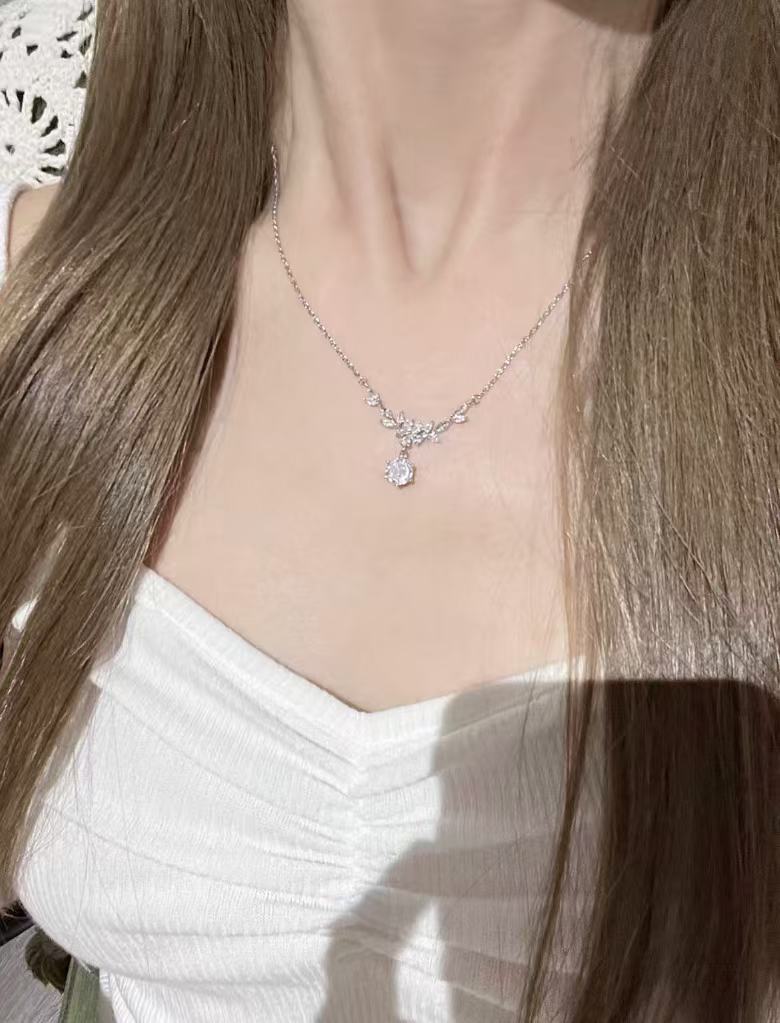 S925純銀穂穂ロマンチックなネックレス一カラットジルコン軽豪華な高級感のある誕生日プレゼントアクセサリー