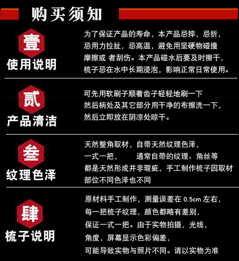 牛角櫛メーカー黒花竹節ハンドル美容櫛露店ソース真空独立包装卸売り