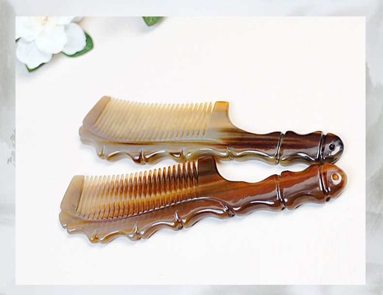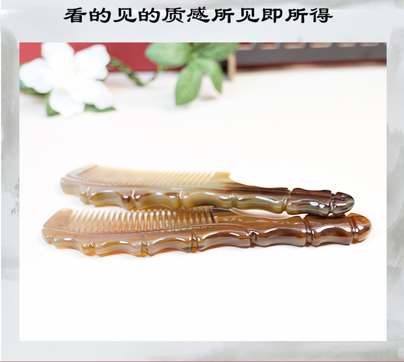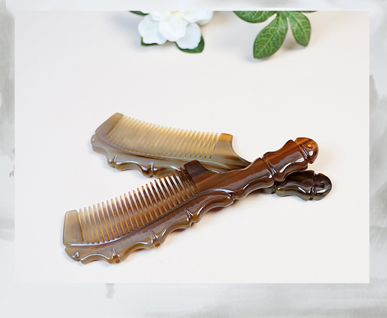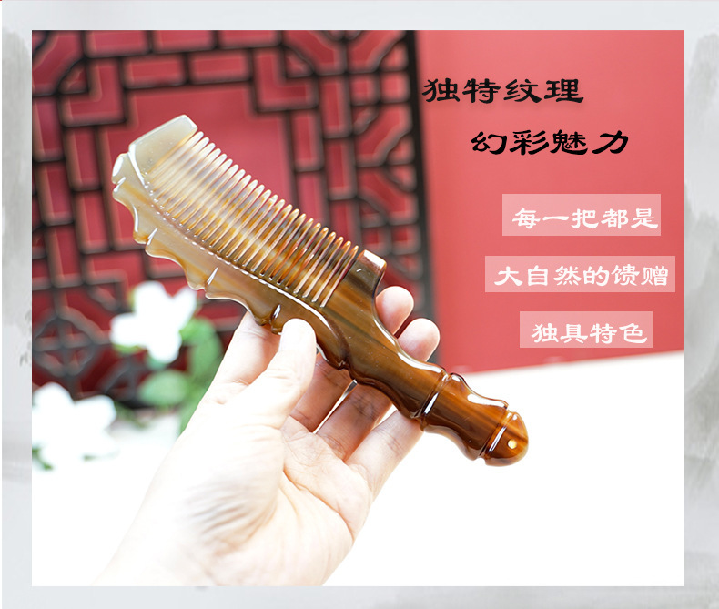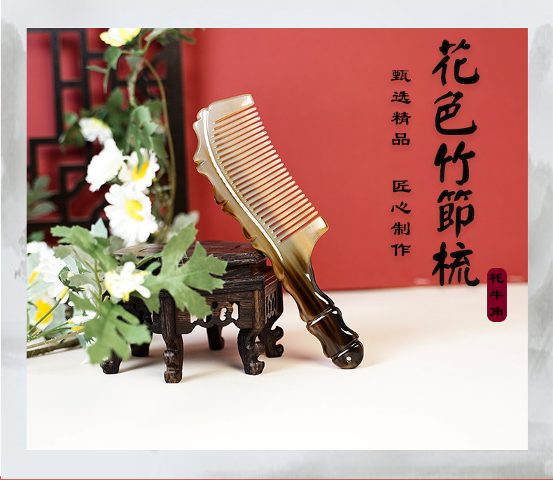 メーカー卸売り純天然ヤク角櫛長髪マッサージ竹節穴ハンドル静電気防止櫛創意包装女
