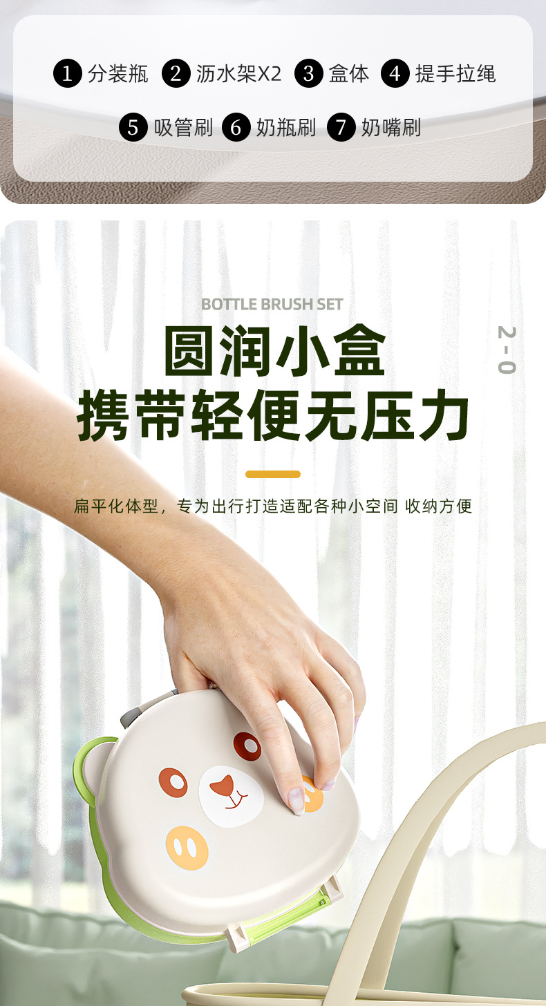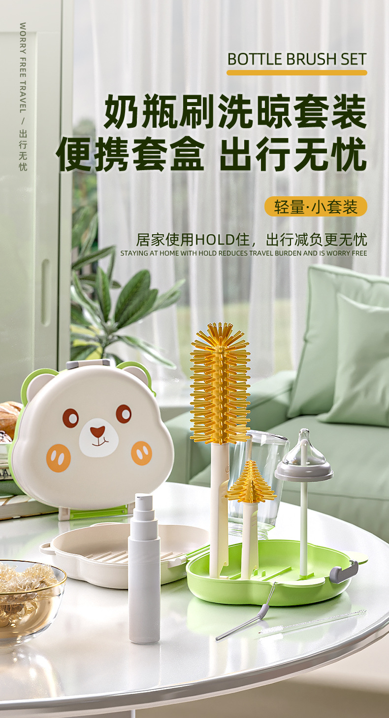 クロスボーダーシリコン哺乳瓶ブラシ、携帯用哺乳瓶ブラシセット、赤ちゃん専用哺乳瓶洗浄収納ボックス、哺乳瓶洗浄ブラシ