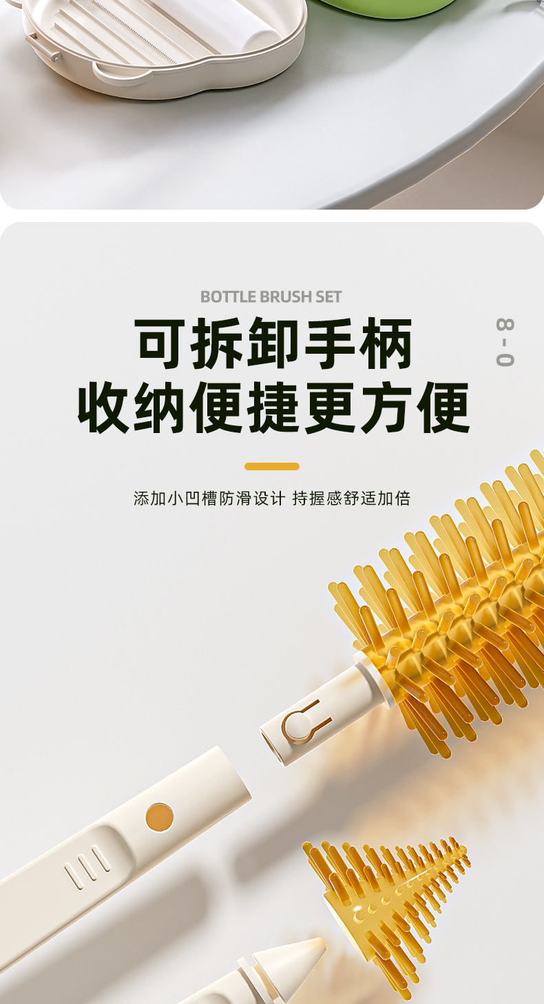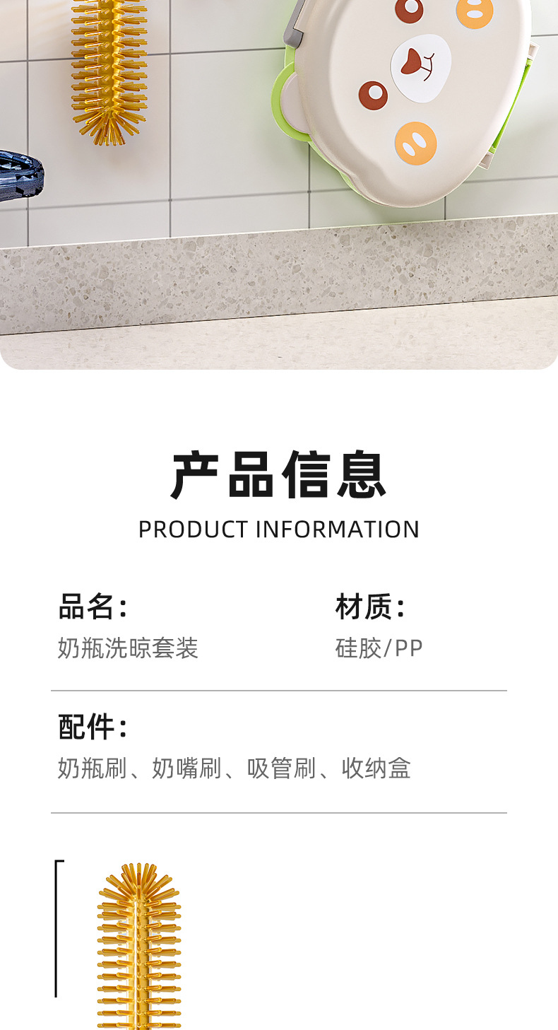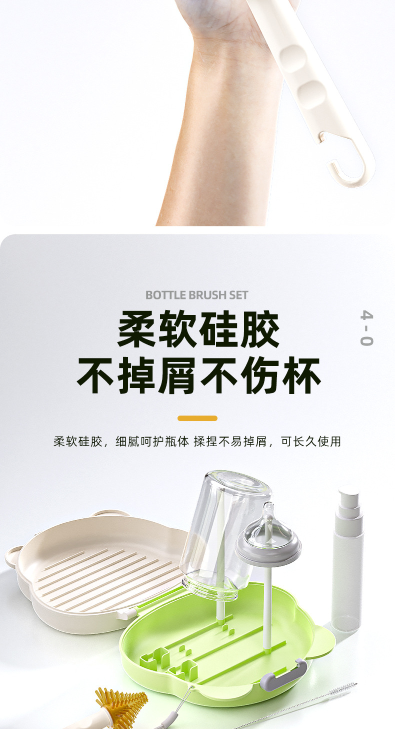宝宝便携奶瓶刷奶嘴刷新生婴儿专用洗奶瓶刷子硅胶清洗工具套装