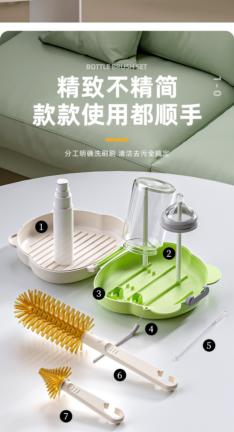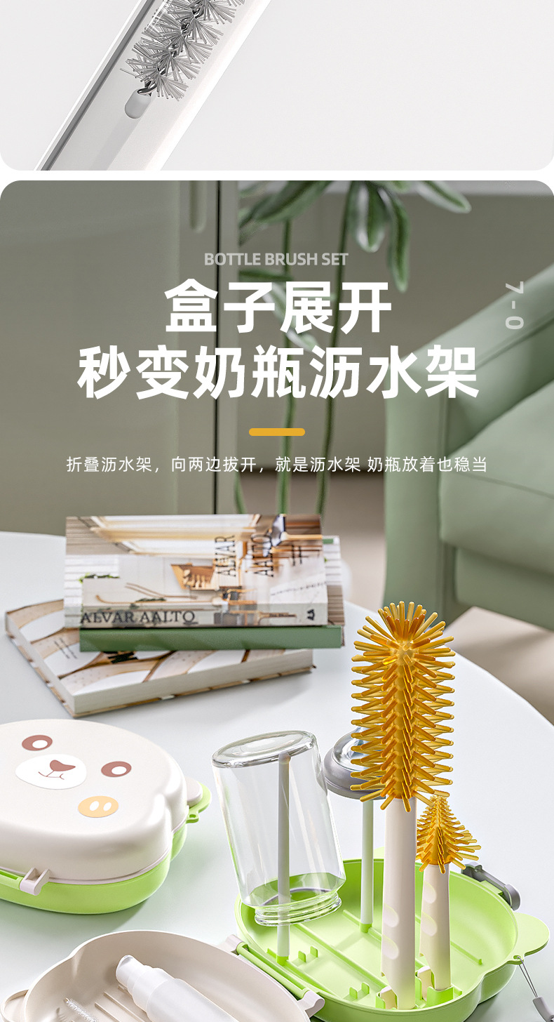 哺乳瓶ブラシセット携帯多機能シリコン哺乳瓶洗浄ブラシ付き収納排水棚乳首ストローブラシ