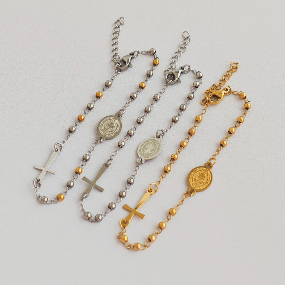 国境を越えたヨーロッパとアメリカの西洋宗教トーテムクロスチタン鋼ブレスレット人気の聖母ビーズステンレス鋼ブレスレットネックレス