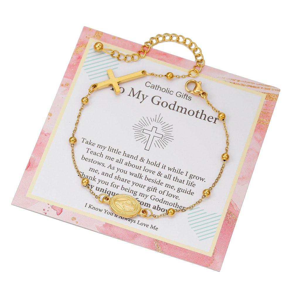 欧美跨境新款宗教图腾吊坠十字架手链女不锈钢镀18K金轻奢手饰品