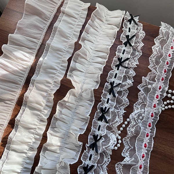 花边是半成品,会有毛边,可以先修剪掉,再微微烤边。