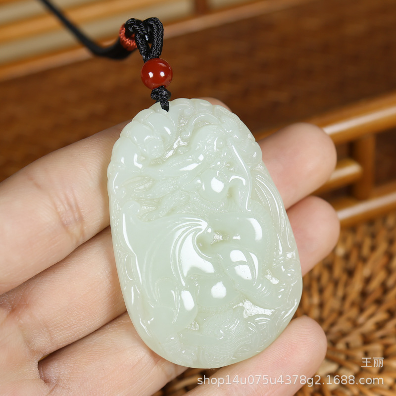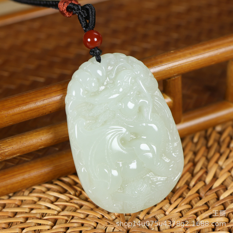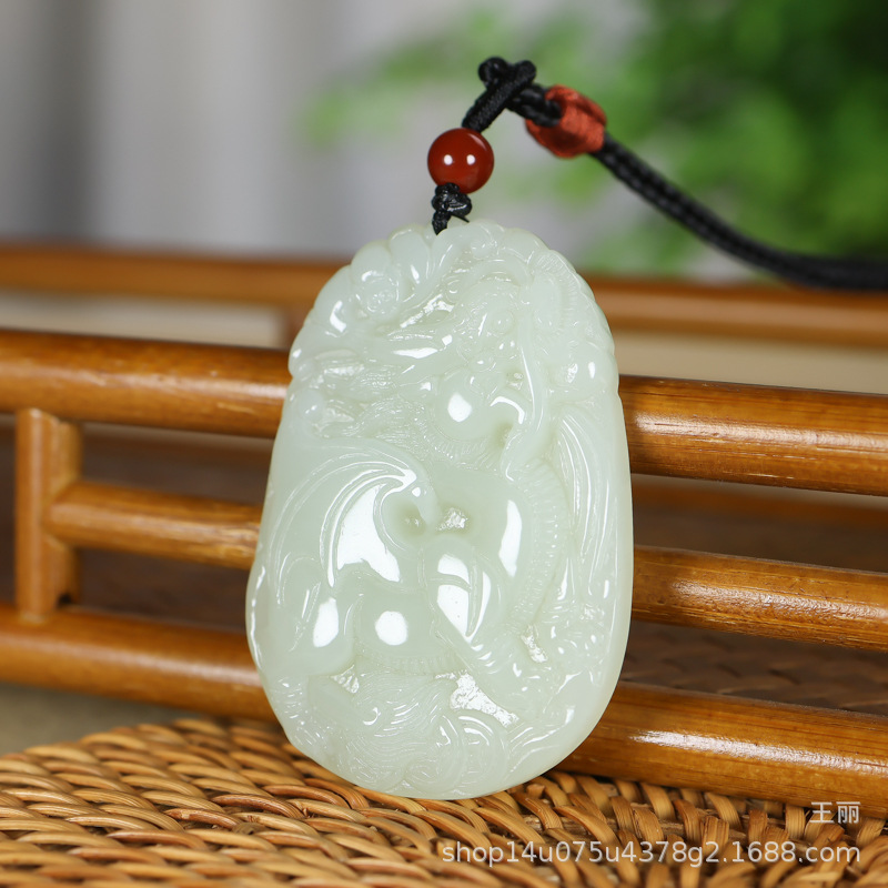 天然和田玉ピシュピストのブランドは男女の金を掛けて新疆青白玉ピシュピストの玉のブランドのネックレスにぶら下がっています。